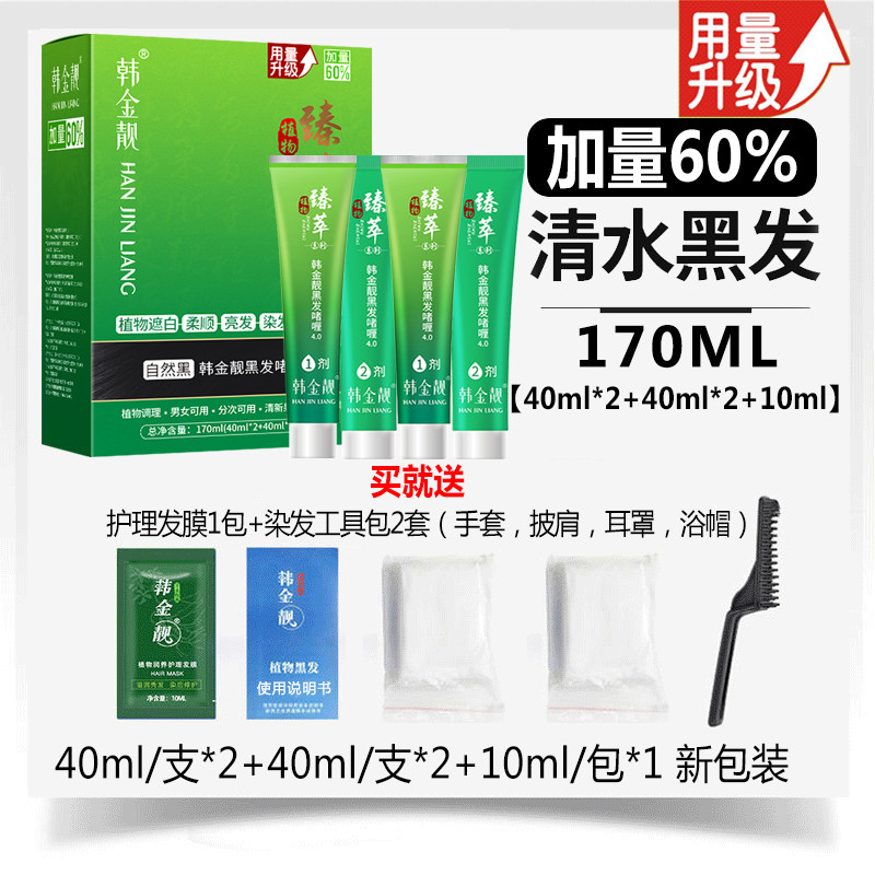 韩金靓染发剂染发膏植物纯自己在家染刺激无染黑茶黑色盖白正品女