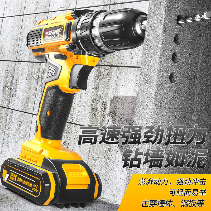 爱瑞德手电钻锂电钻大功率家用冲击充电钻打墙孔锂电池电动螺丝刀