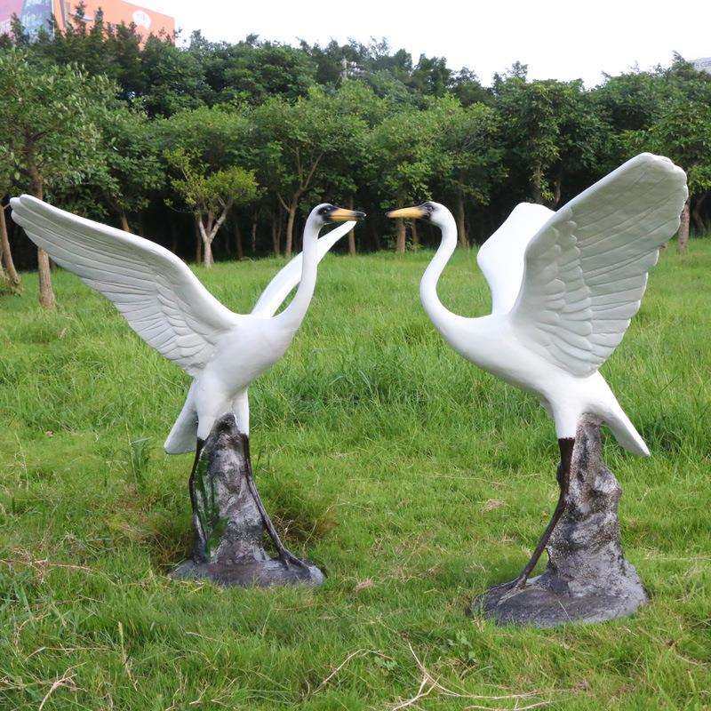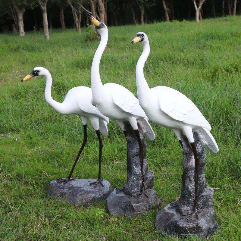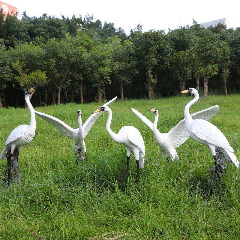 玻璃钢仿真仙鹤摆件 户外水池白鹭丹顶鹤动物雕塑 园林庭院装饰品