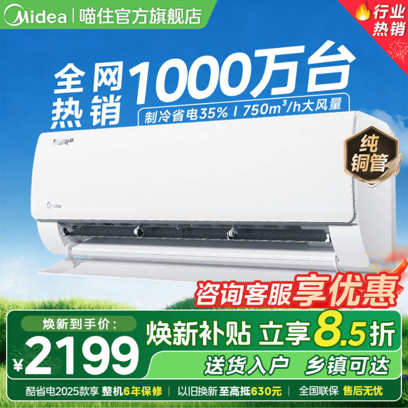 【新品】美的空调一级1.5匹1匹家用酷省电二代挂机官方旗舰店正品