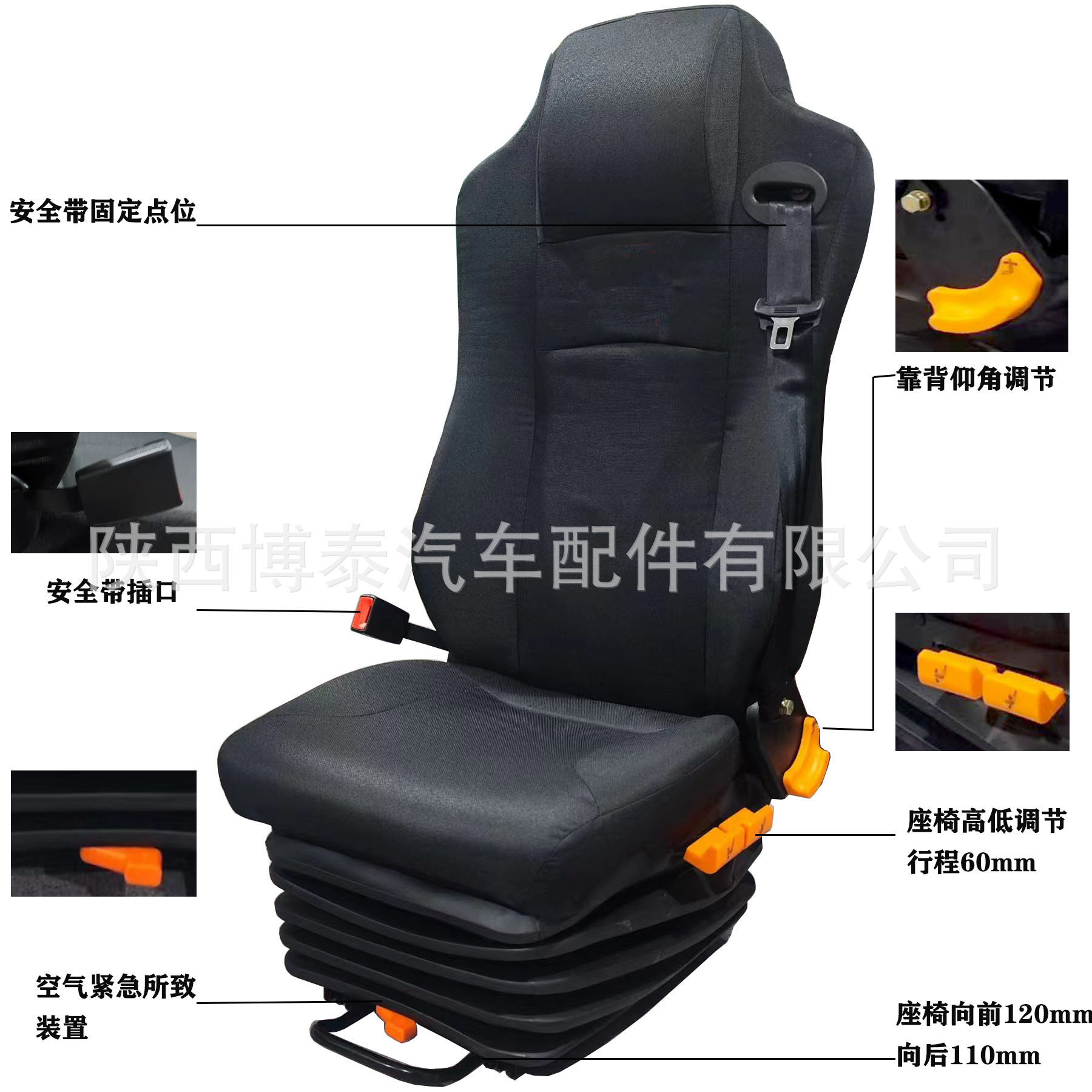 工程生产直销安全气囊减震座椅 高低调节司机座椅 重卡气囊座椅