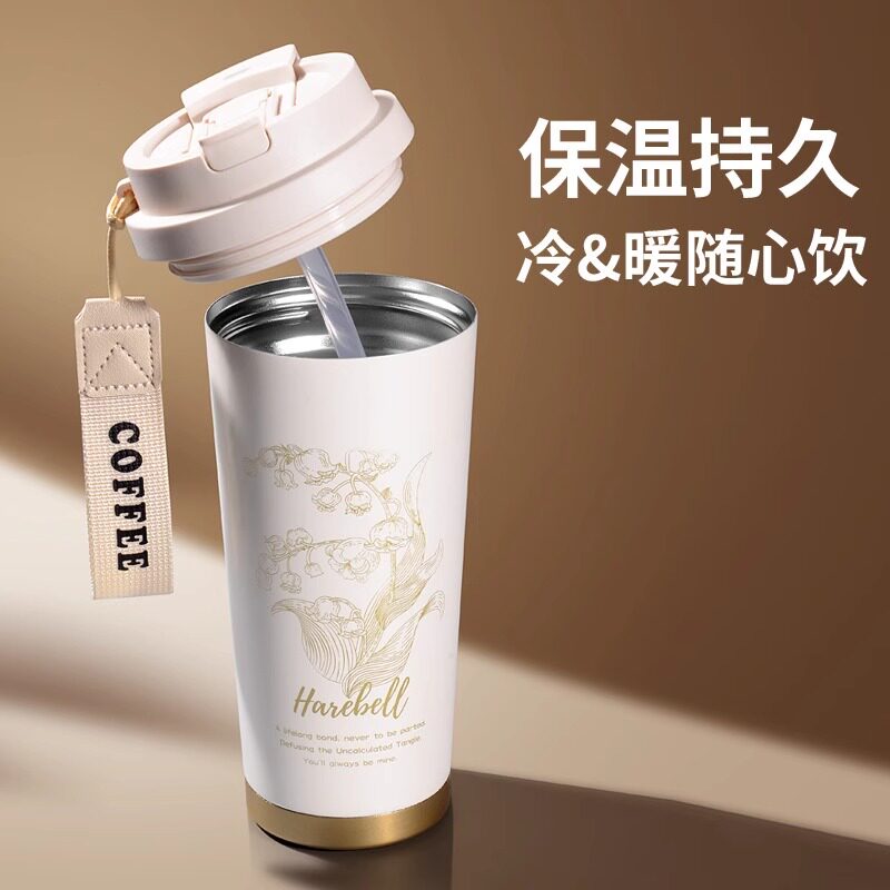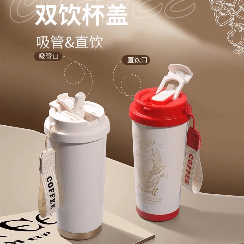保温杯316不锈钢双饮咖啡杯大容量女高颜值随行吸管水杯情侣杯子