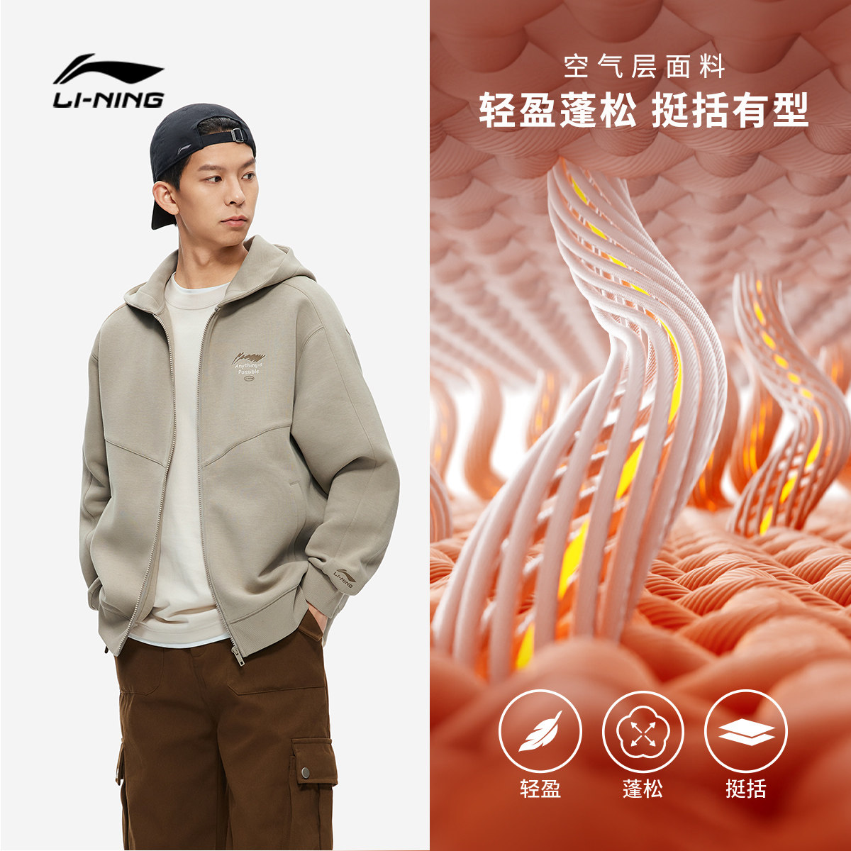 李宁外套男士春季长袖情侣连帽衫宽松开衫上衣女士针织卫衣运动服