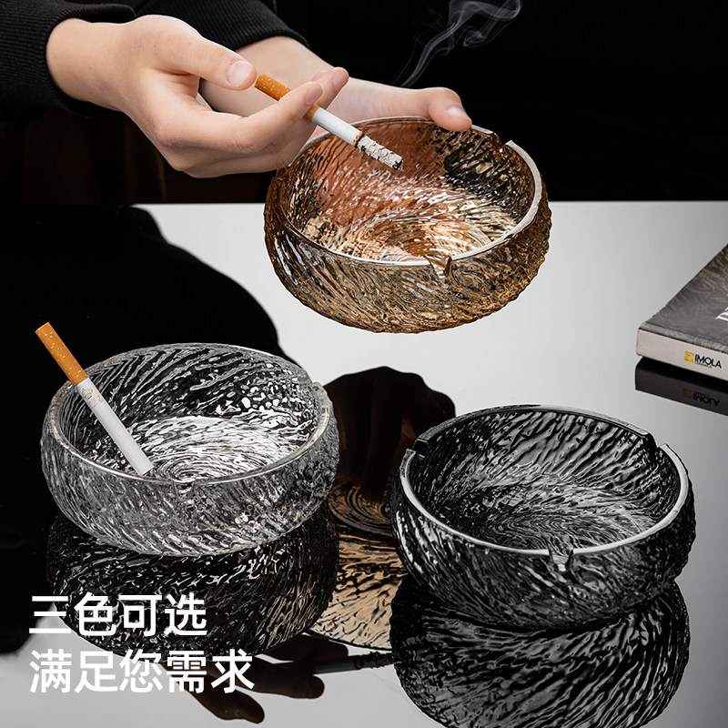 水晶烟灰缸高级感高端大气上档次大小号玻璃个性创意摆件家用客厅