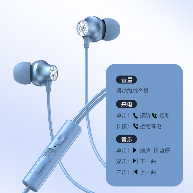 舒适克莱因蓝有线小耳机