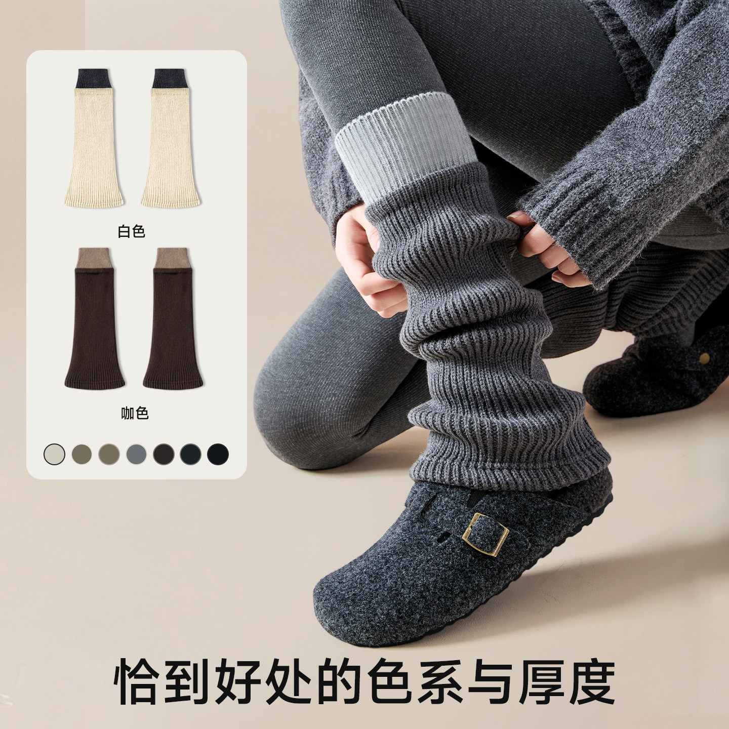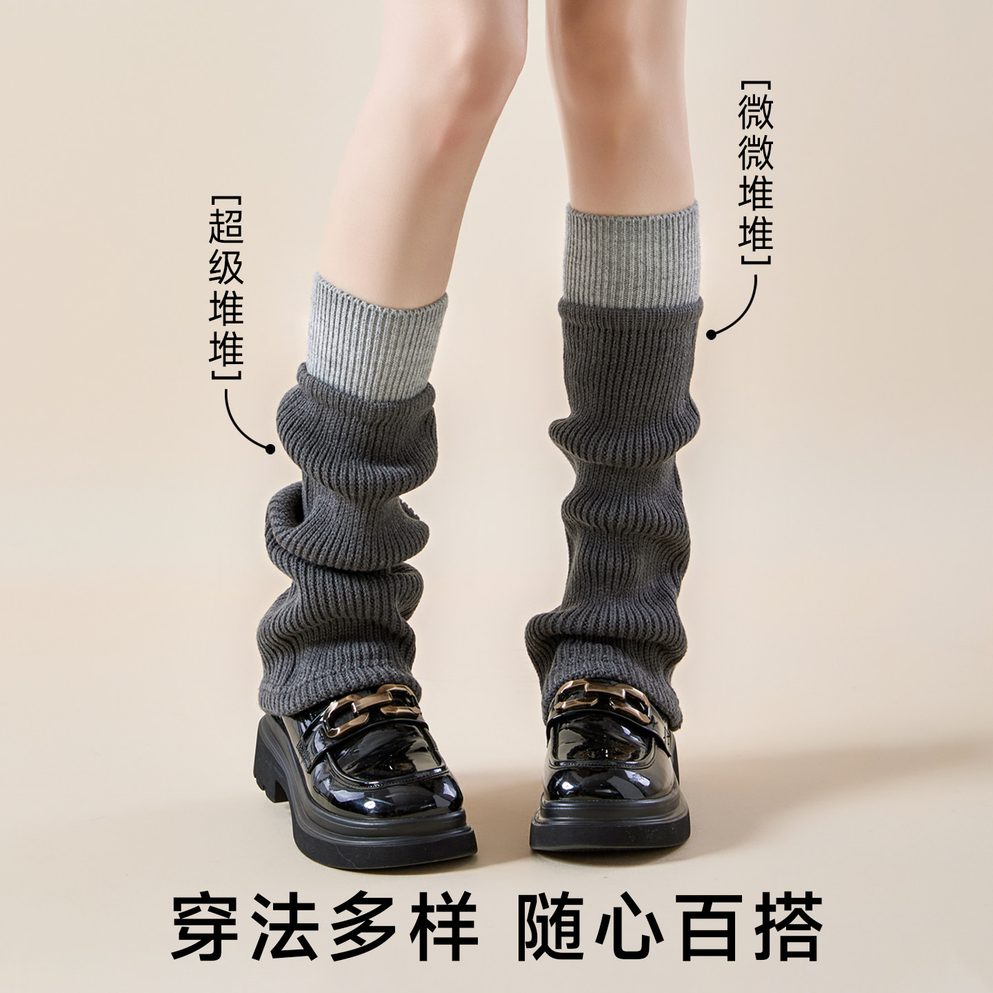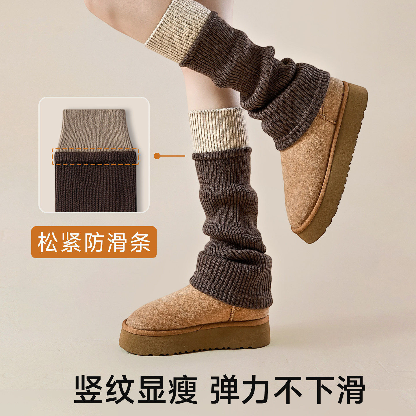羊毛袜套灰色撞色拼接女堆堆袜秋冬加厚搭勃肯鞋显瘦小腿袜子腿套