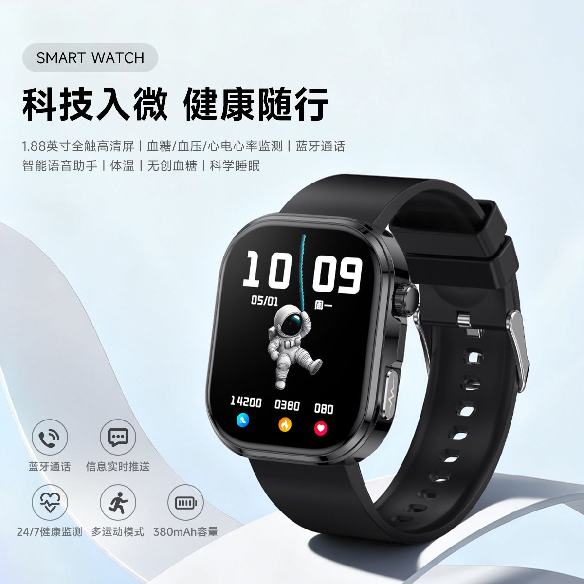 智能手表ECG心电血糖监测蓝牙通话运动手表心率血氧微体检GE52