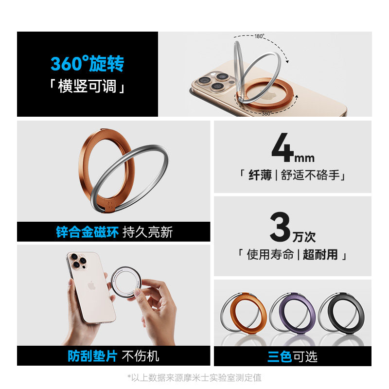 新款手机支架magsafe双面磁吸指环扣强力车载多功能支撑旋转桌面