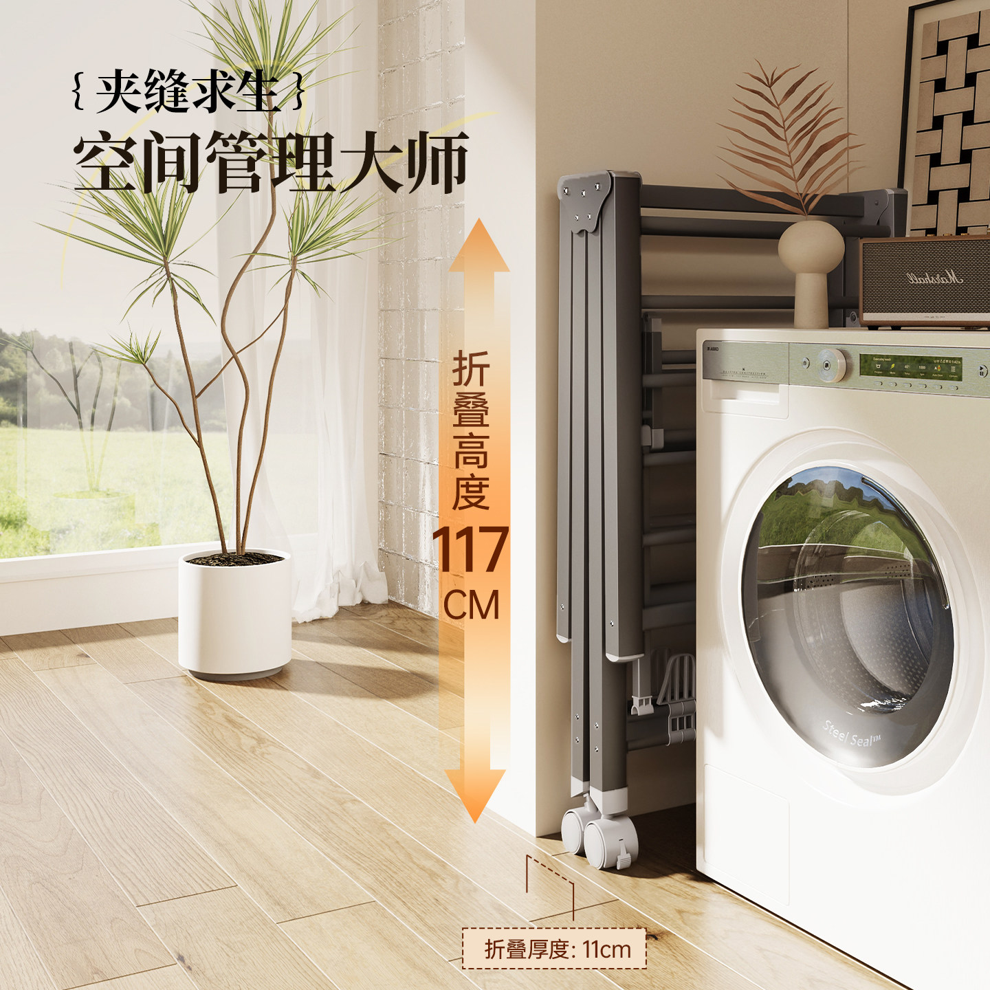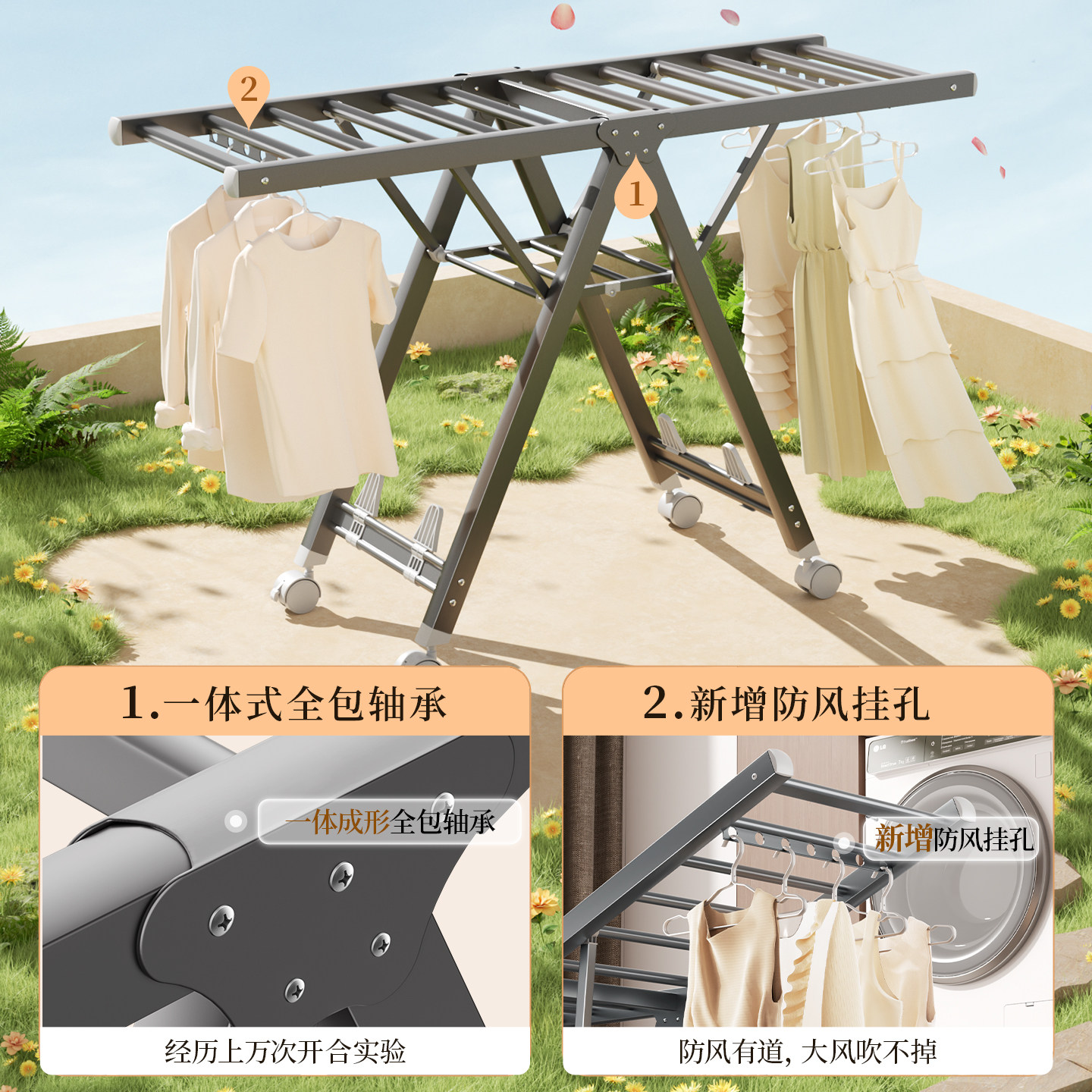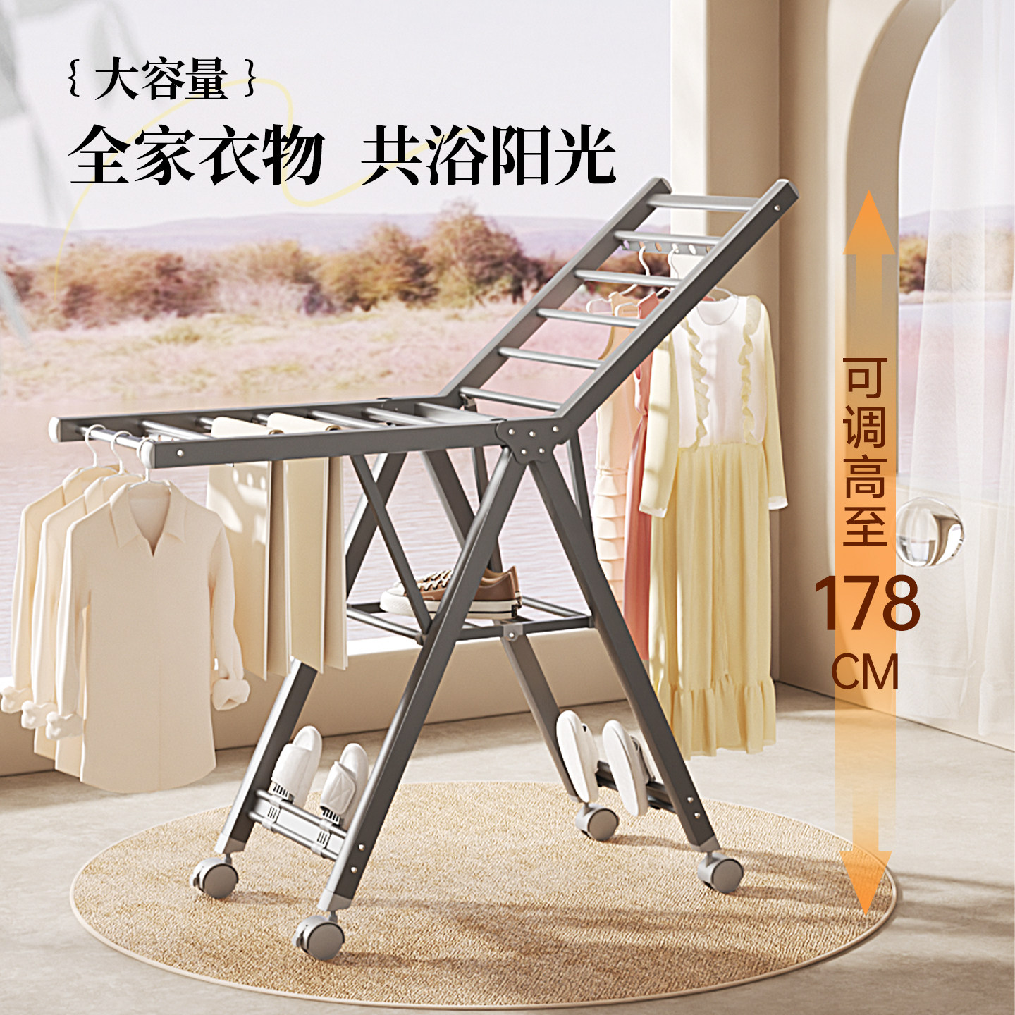 【国补】佳帮手奶油折叠晾衣架室内阳台家用凉衣服落地晒被子神器