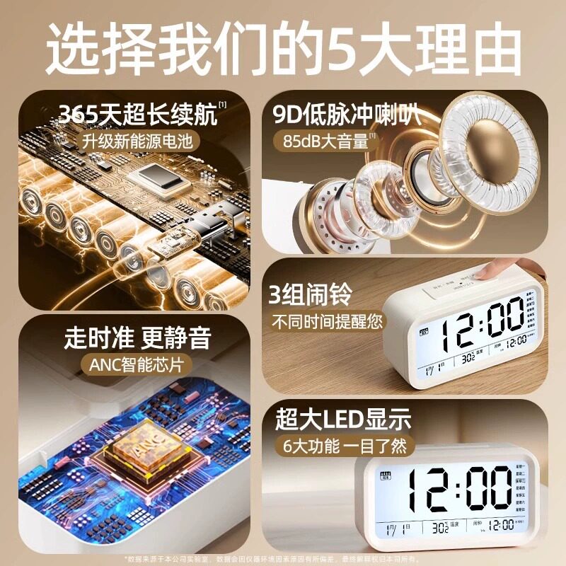 闹钟学生专用起床神器2026新款智能电子时钟儿童钟表男女强力叫醒