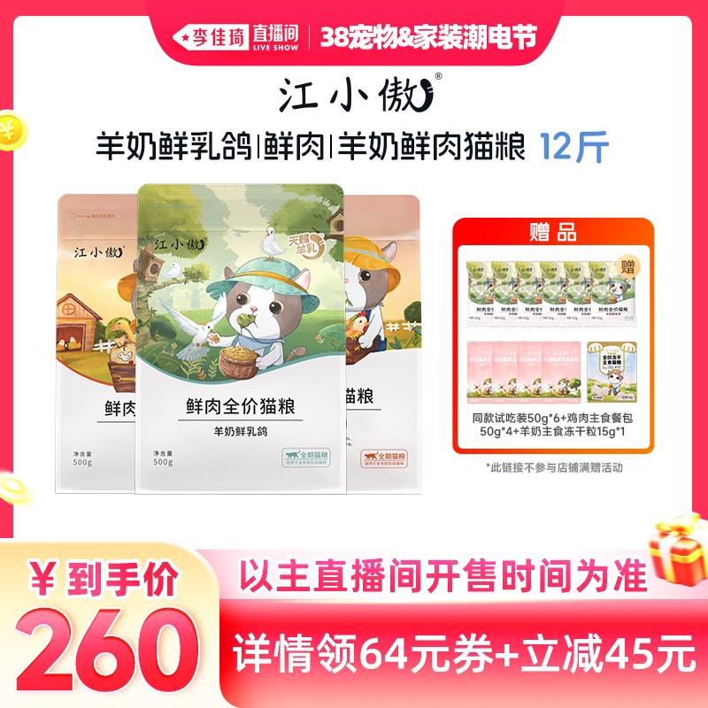 【李佳琦宠物&家装潮电节】江小傲羊奶鲜乳鸽鲜肉猫粮12斤装