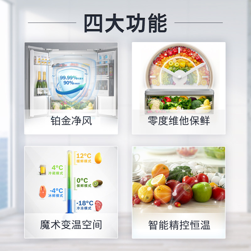 政府补贴海尔出品统帅悦己懒人510十字对开四门超薄一级家用冰箱