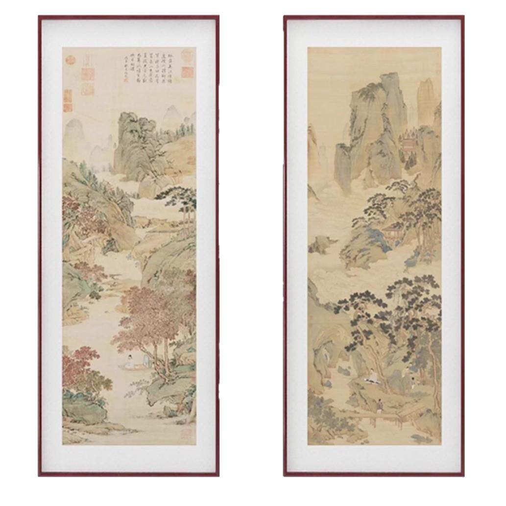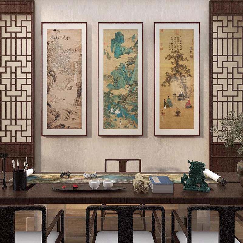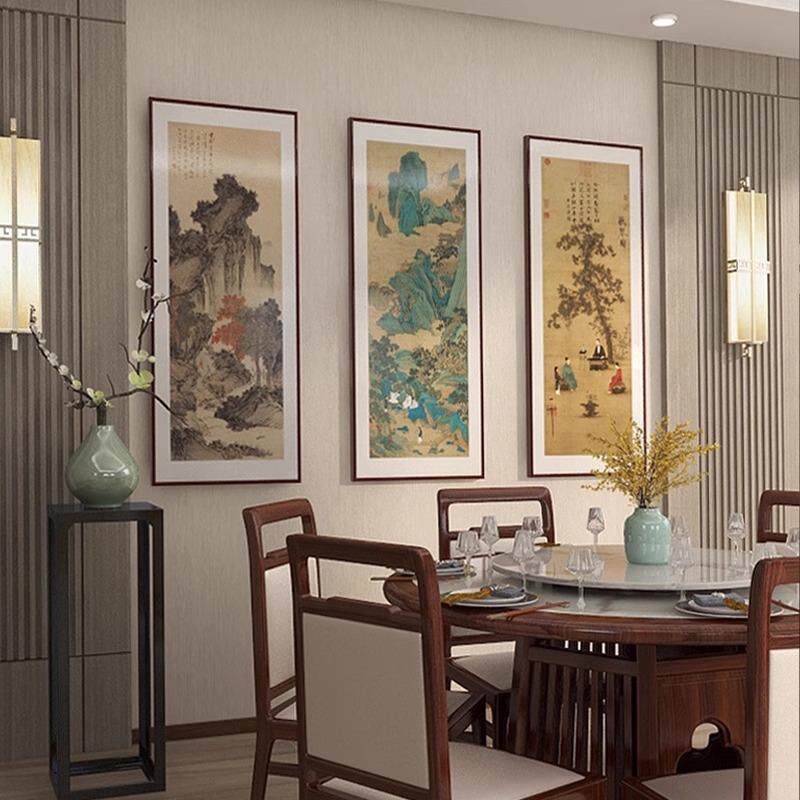 文征明玄关装饰画国画山水风景画客厅挂画新中式书房茶室壁画竖版