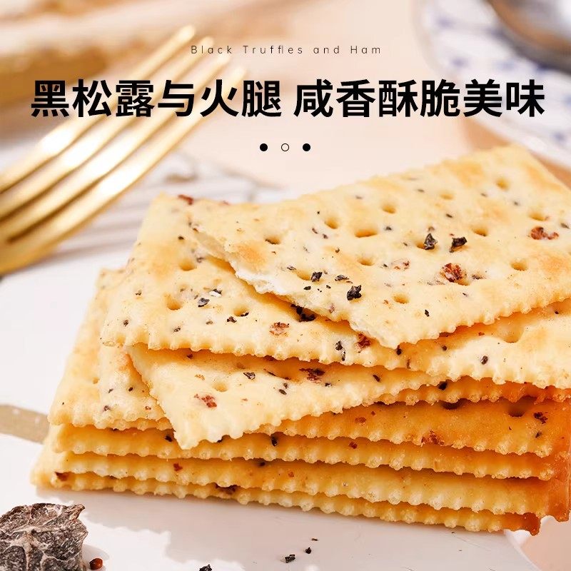 煌记黑松露火腿苏打饼干金蒜牛肉馅咸味梳打网红爆款小吃休闲零食