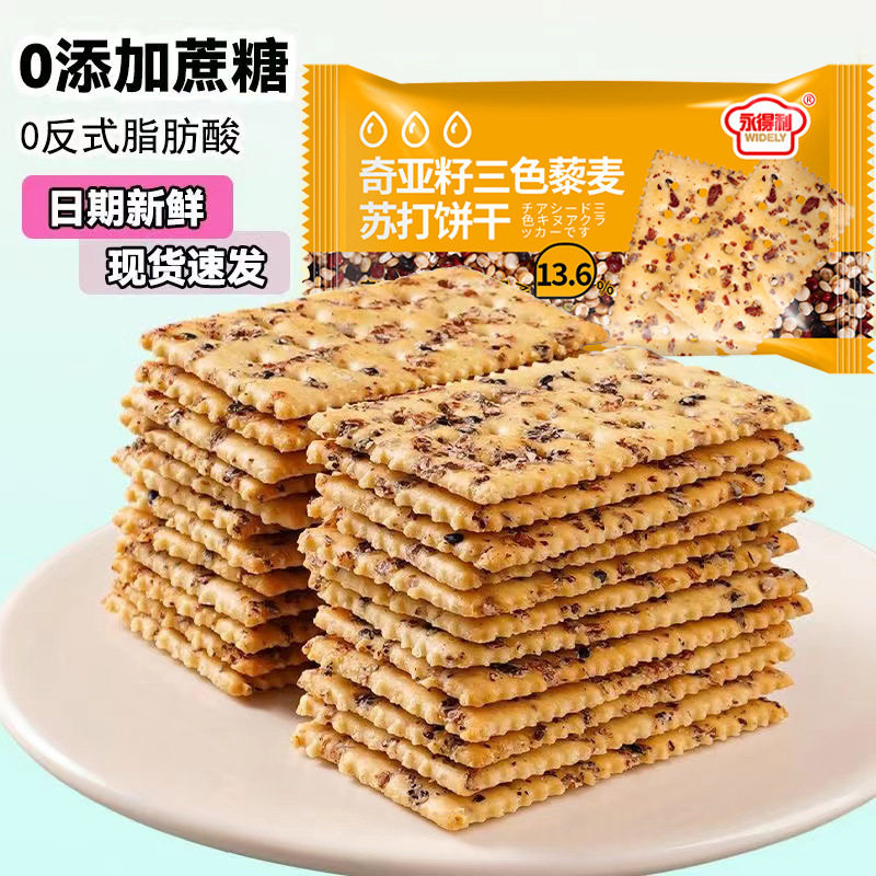奇亚籽三色藜麦苏打饼干休闲零食0粗粮早餐饼干代餐解馋好吃充饥