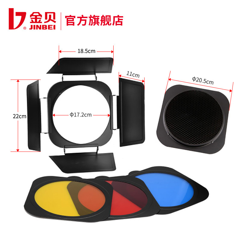 金贝JB-A四叶片挡板蜂窝网蓝红黄色片摄影附件55度标准灯罩适用