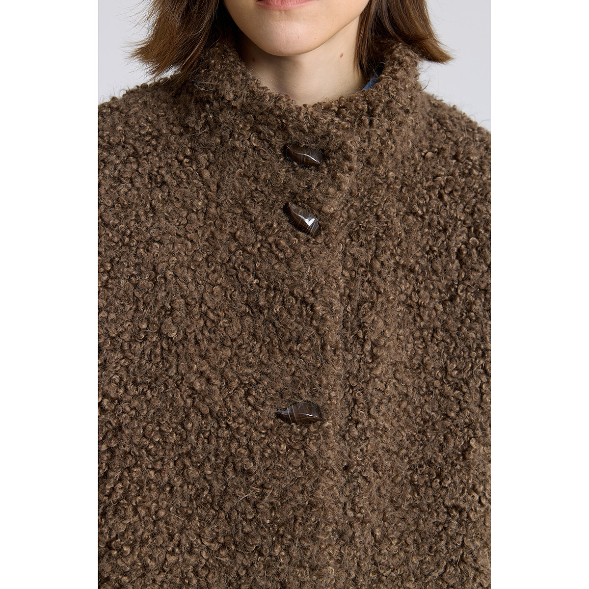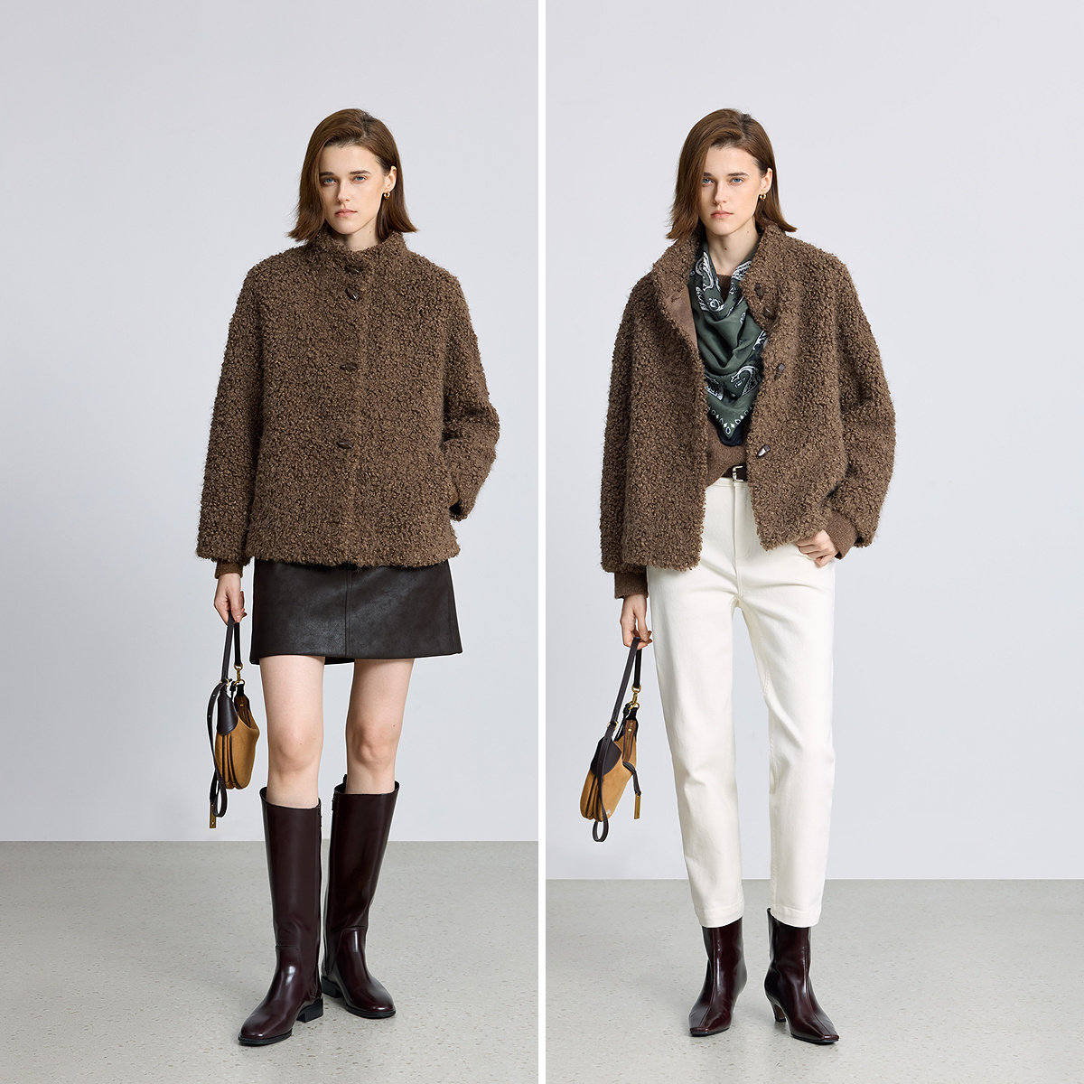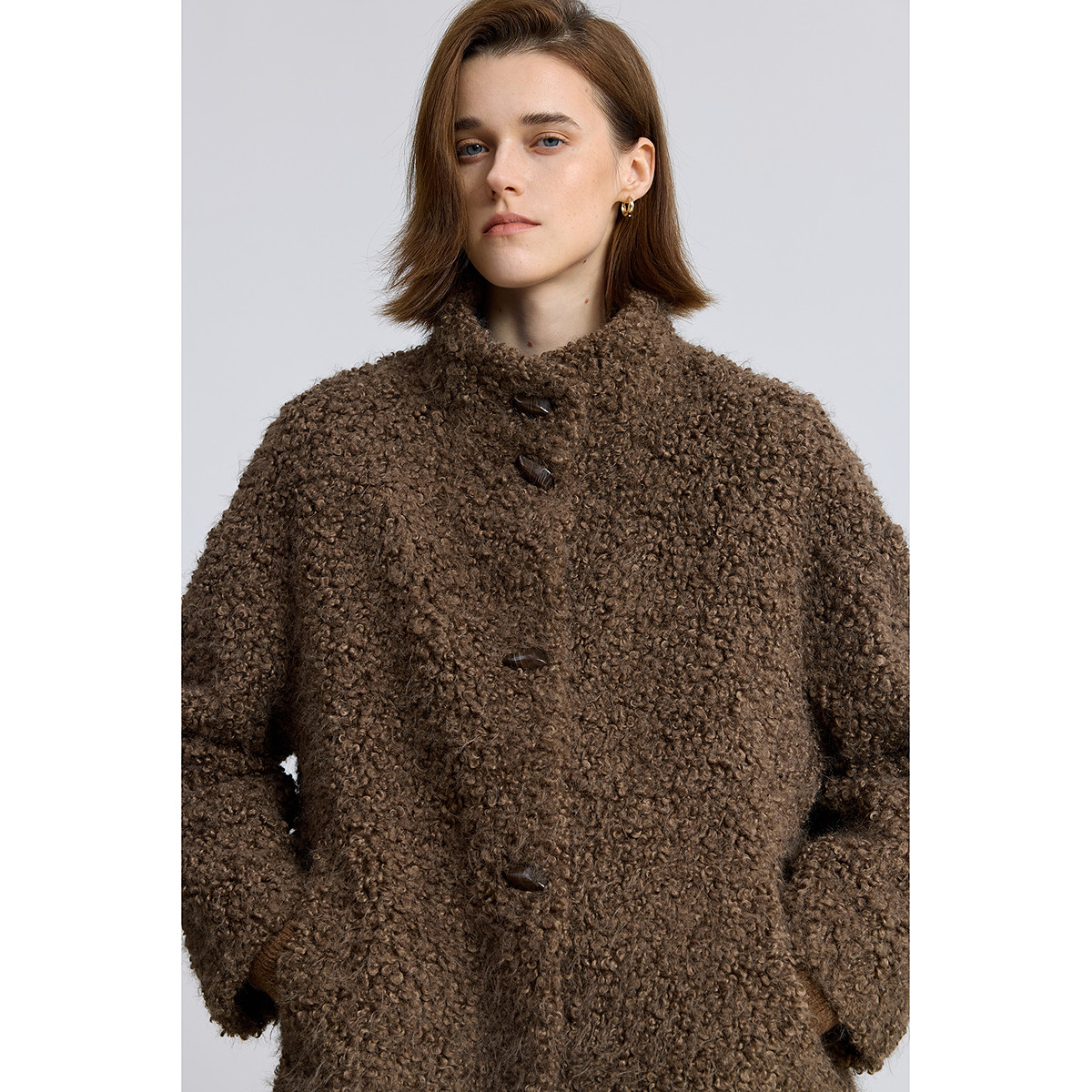 LILY2025冬新款简约松弛感立领宽松休闲暖感毛绒外套女短款小个子