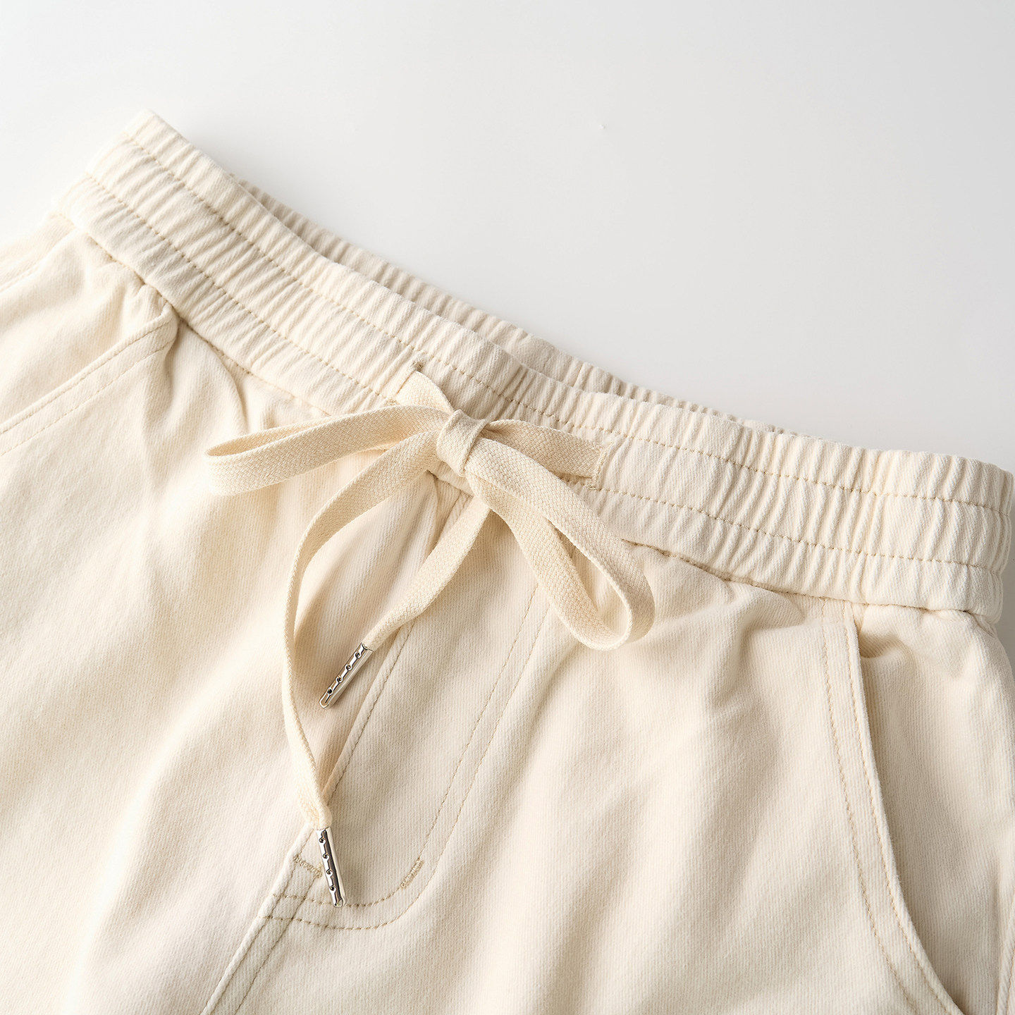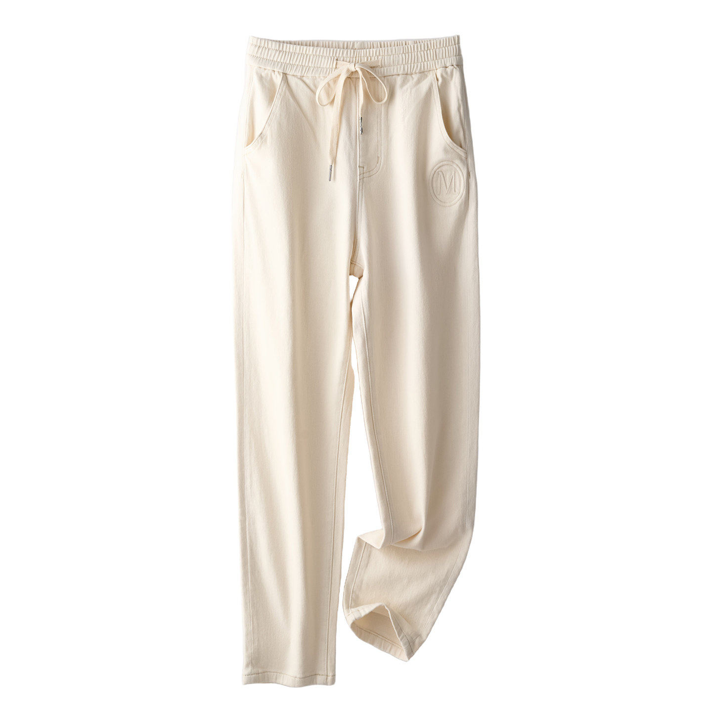 Smen诗萌浅色抽绳休闲裤子2026春秋季新款高腰显瘦直筒牛仔裤女
