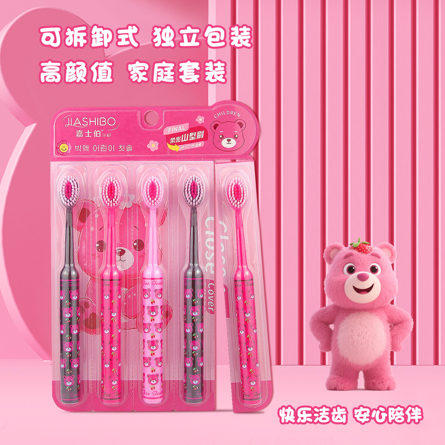 新款罗马柱草莓熊山型凸面宽头软毛牙刷护龈家用小头清洁樱桃
