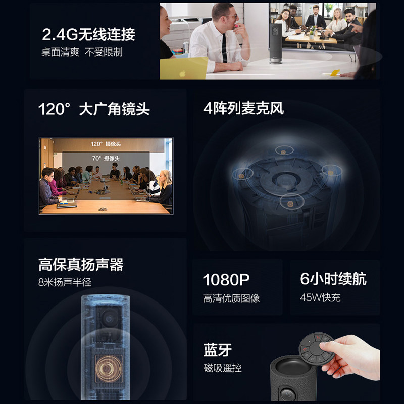 海康威视音视频会议一体机高清120°大广角4阵列麦克风V122WS