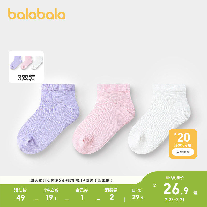 巴拉巴拉男童袜子儿童网眼袜夏季薄款短袜弹力三双装