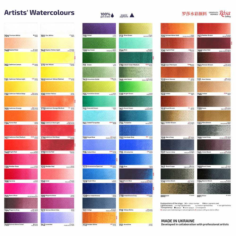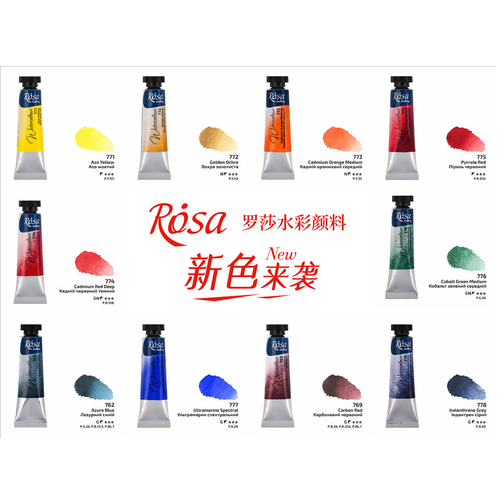 乌克兰rosa进口罗莎水彩颜料艺术家固体水彩套装自选色沉淀80