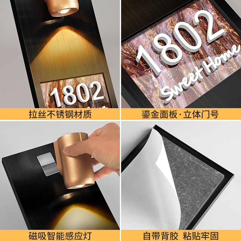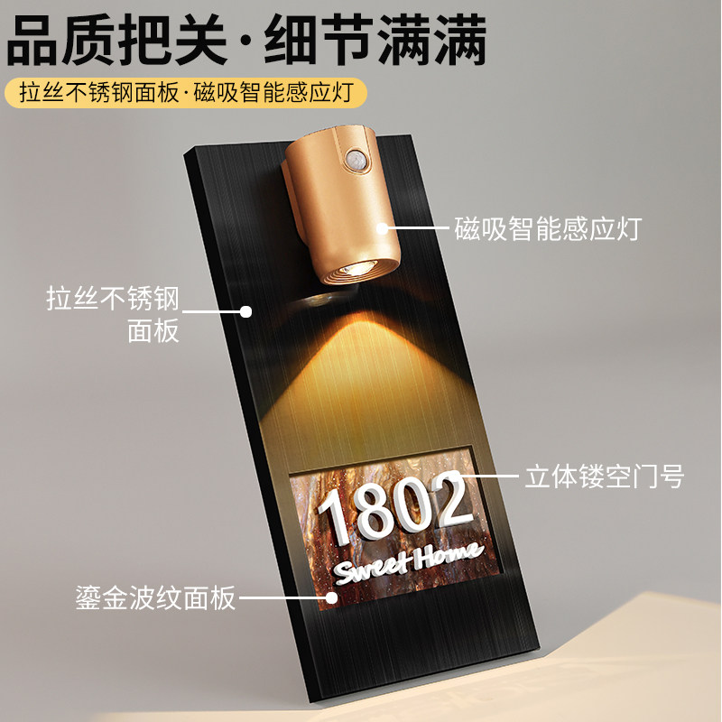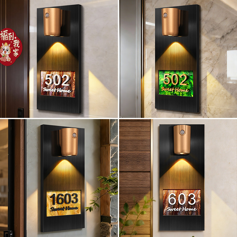 门牌号高级感轻奢创意入户门口号码牌家用卧室氛围感好物国潮风墙壁墙面墙饰套房定制家居中式奶油风门灯订制