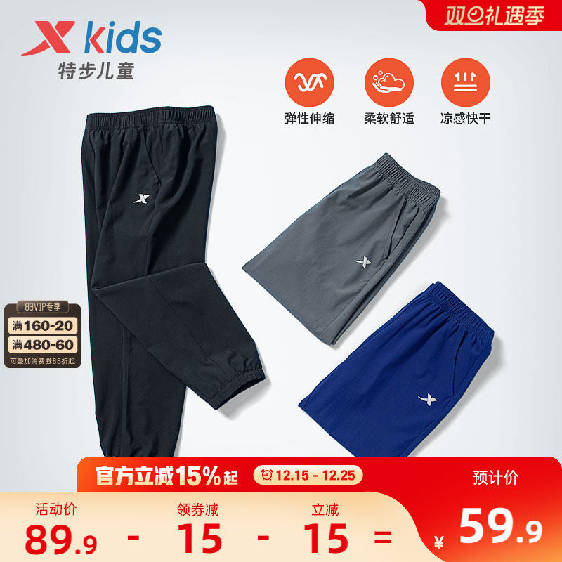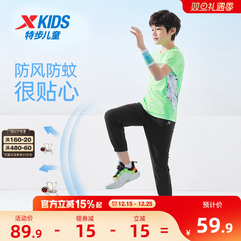 特步童装男童裤子速干裤大童防蚊裤2025夏季新款儿童运动长裤薄款