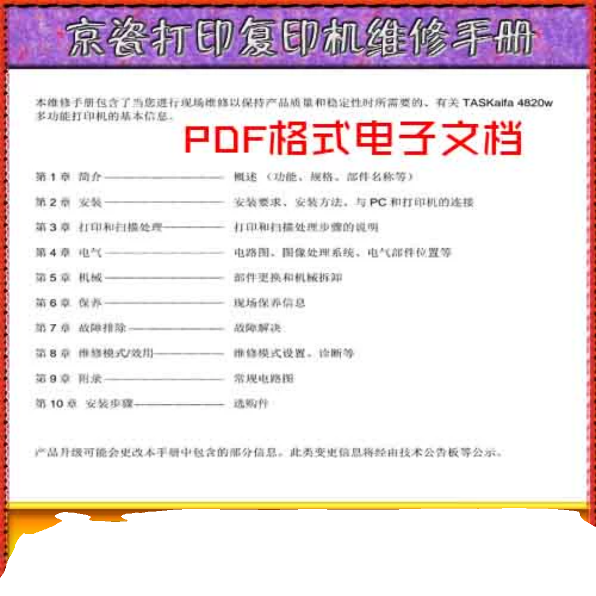 瓷 TASKalfa 4820W 奇普KIP7100工程机复印机维修手册