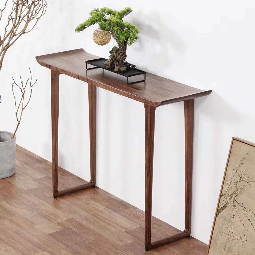 北欧黑胡桃实木玄关桌新中式翘头案现代简约家用条案玄关案台供桌