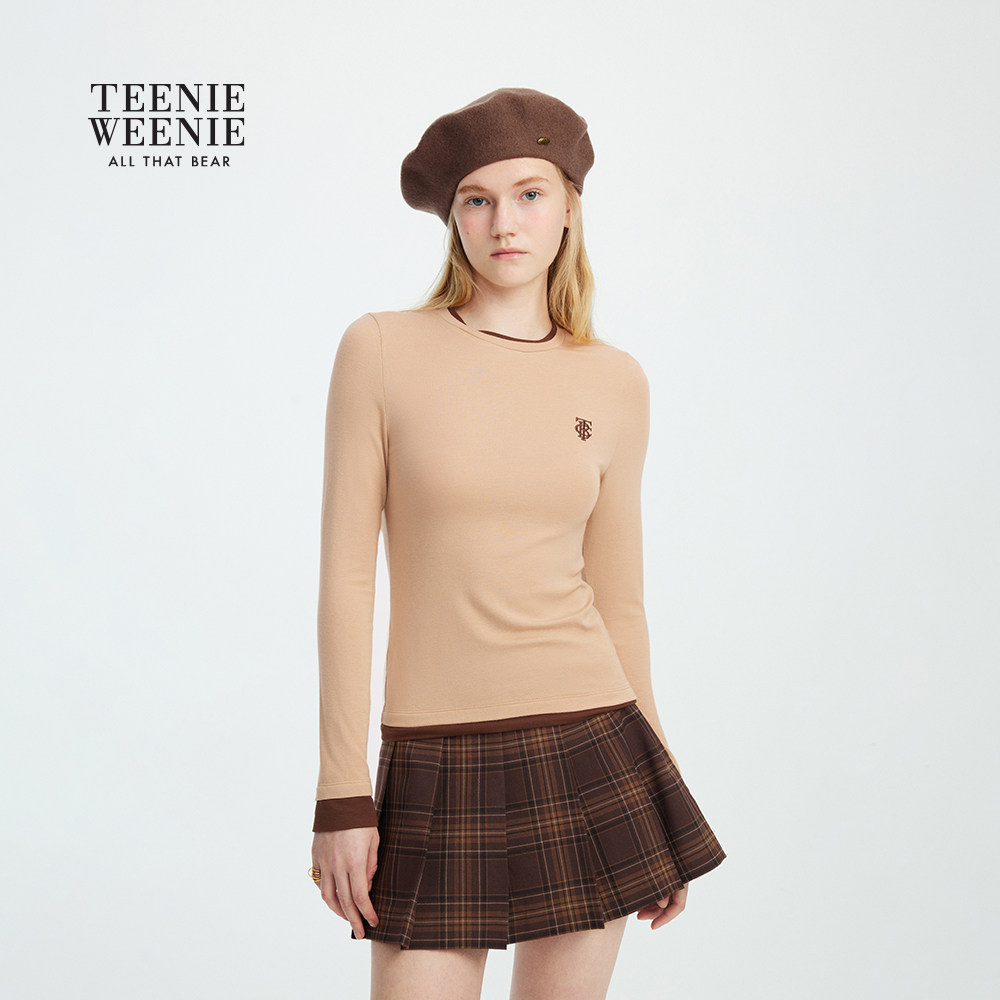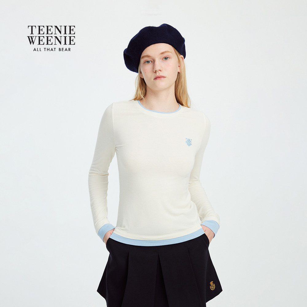 TeenieWeenie小熊女装T恤2025秋季新款简约线条撞色拼接长袖上衣