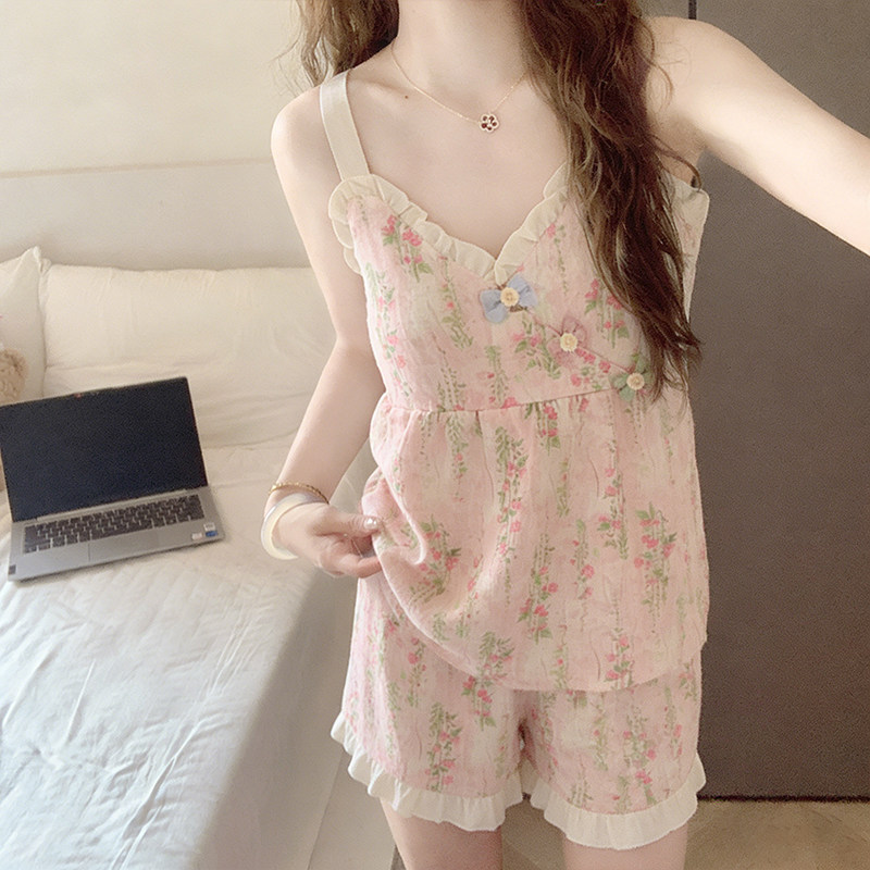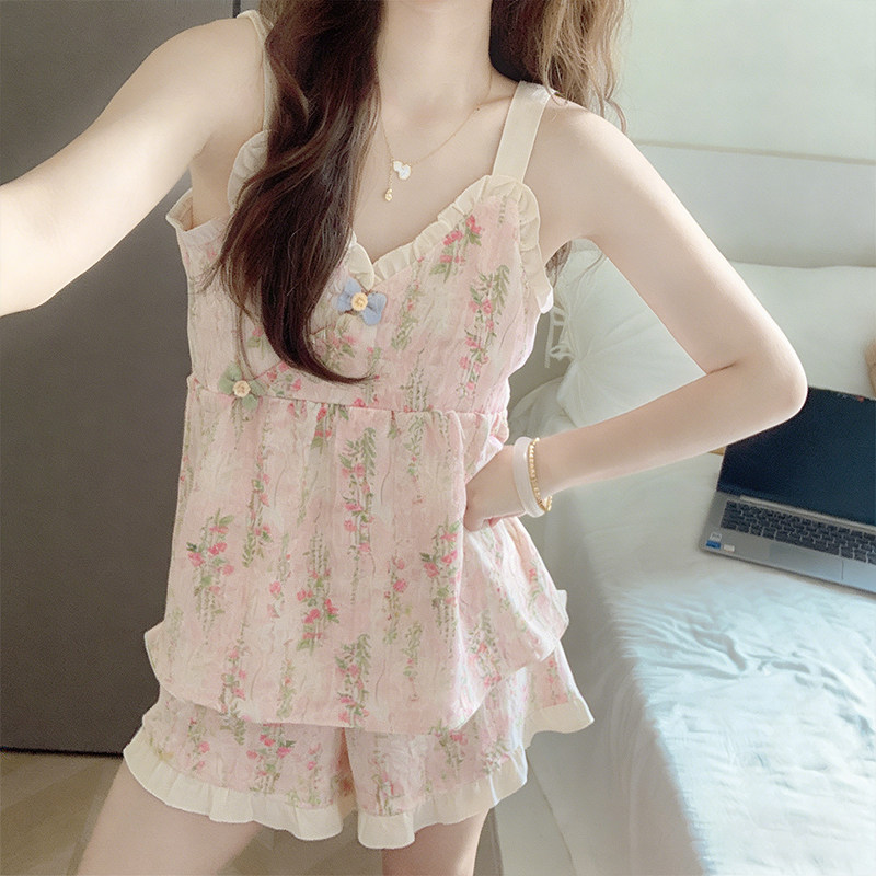 带胸垫睡衣女款夏季2026新款碎花吊带甜美女士云朵棉家居服可外穿