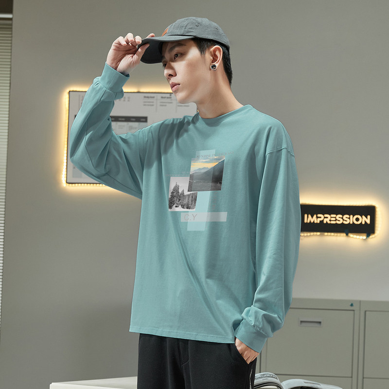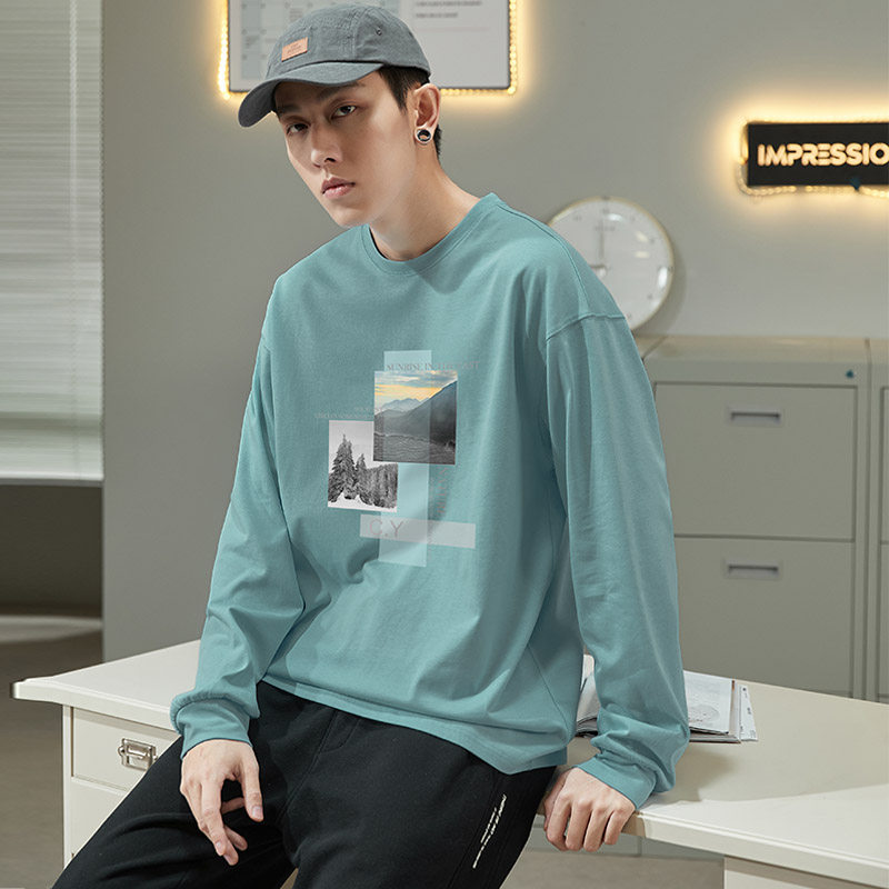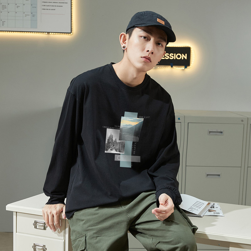唐狮秋长袖T恤男士港风都市内搭打底衫韩版男士潮流宽松显