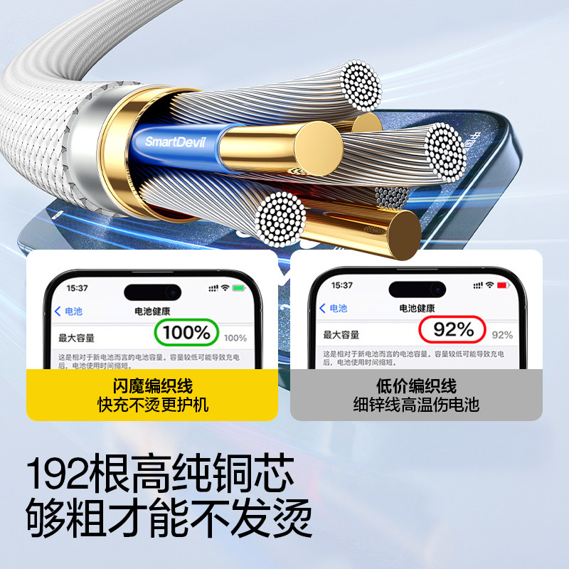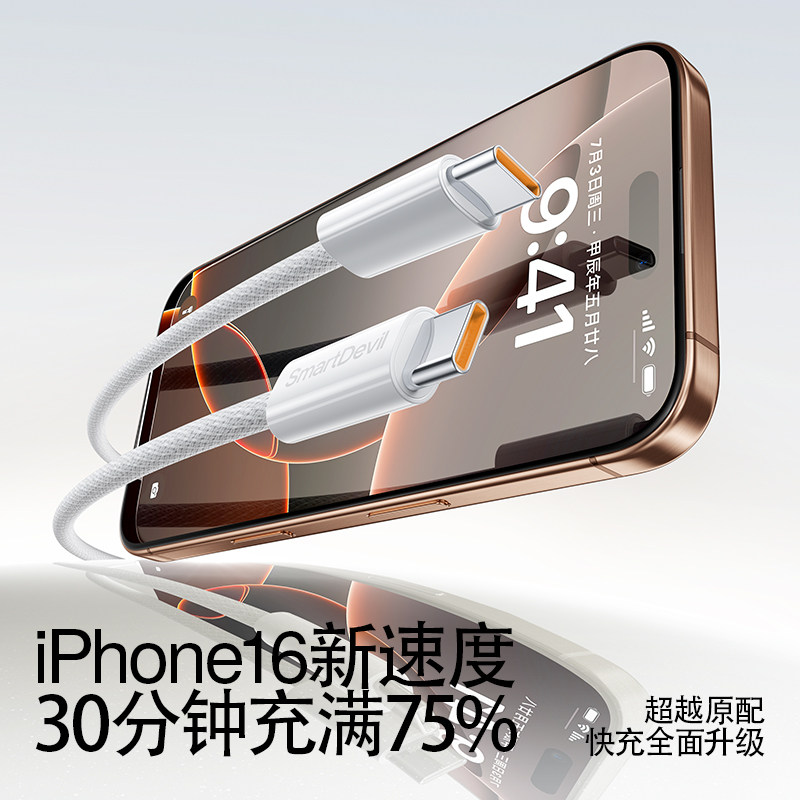 闪魔适用苹果16数据线iPhone17promax充电线15双头typec车载ipad平板手机笔记本电脑PD100W快充ctoc车载编织