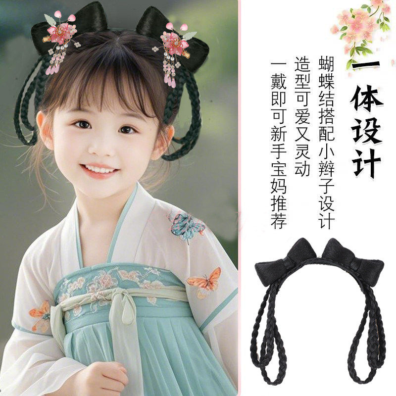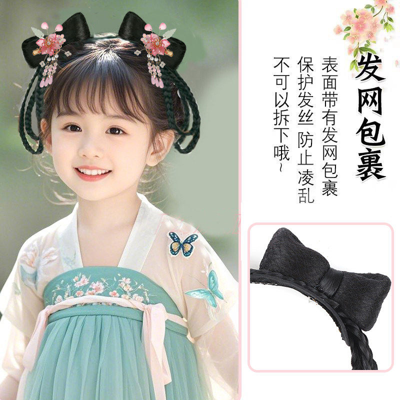 儿童汉服假发蝴蝶结发髻造型古装假发包女童汉服假发头饰假发古风