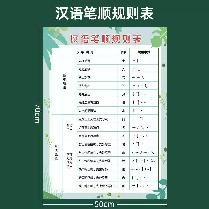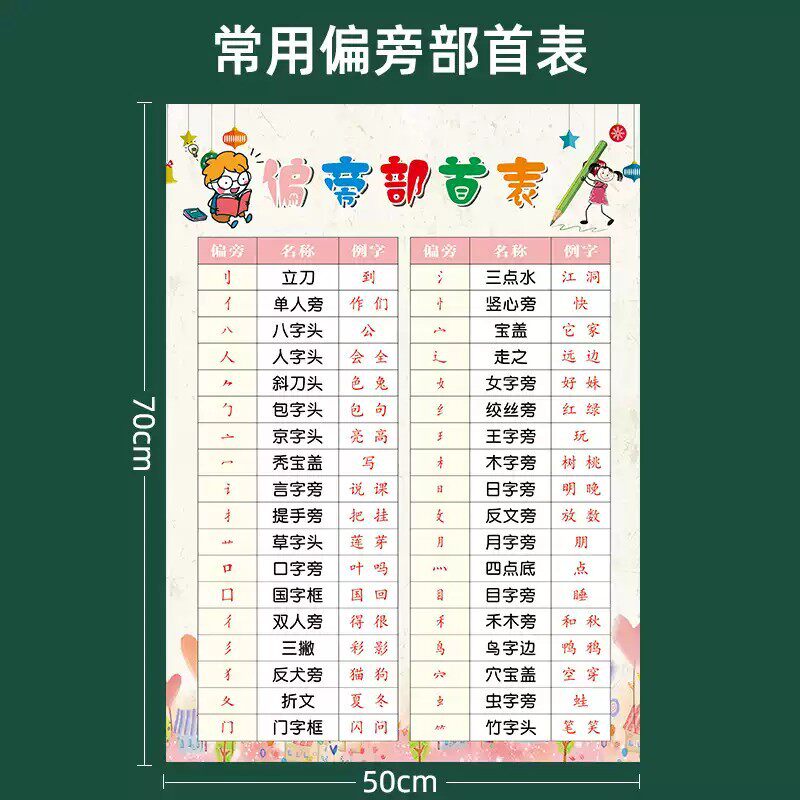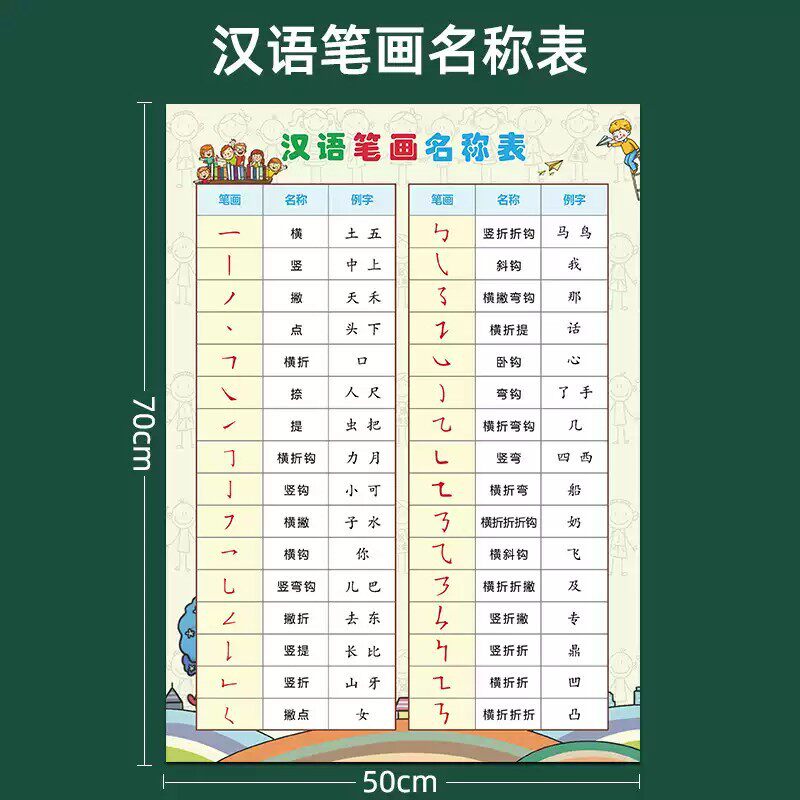 小学一年级笔画偏旁部首名称表汉字笔顺挂图拼音识字规则乘法口诀