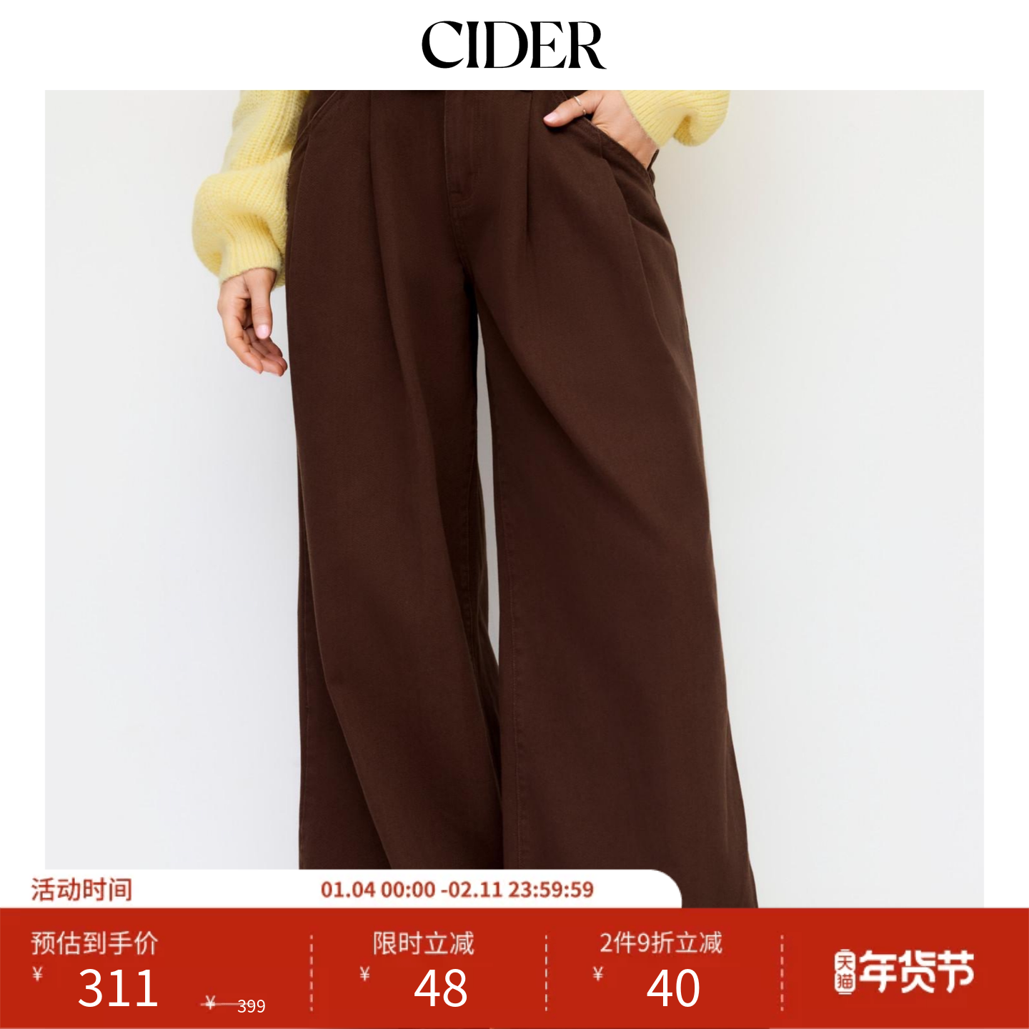 CIDER 都市游牧风秋冬女装低腰褶皱阔腿牛仔长裤配腰带 114754243