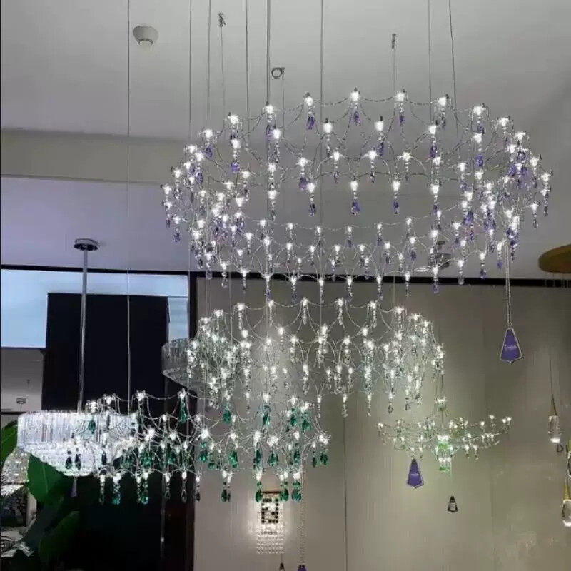 意式轻奢水晶吊灯 光立方满天星吊灯 三色无极调光吊灯 吸吊两用