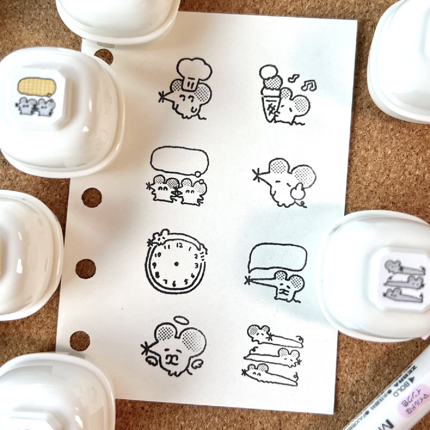 贰叁实验室 原创设计可爱鼠鼠奶油章光敏印章手账打卡素材