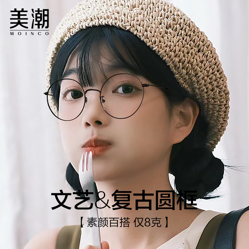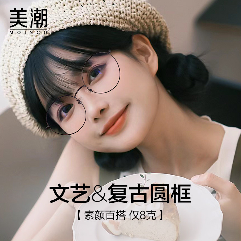 近视眼镜女款防蓝光辐射方圆脸眼睛框素颜圆框网上可配有度数镜架