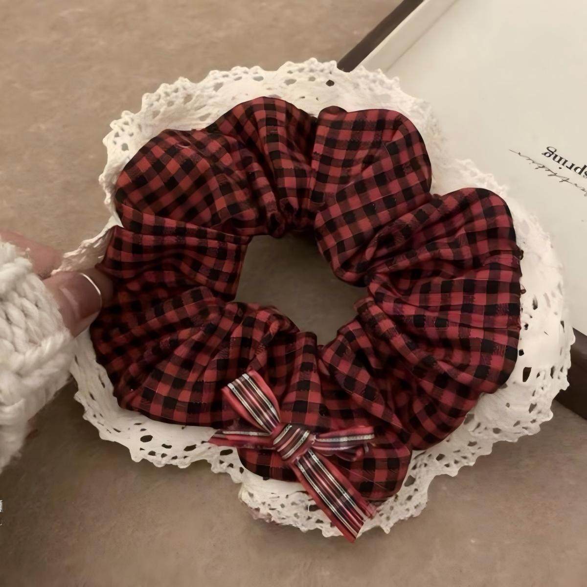 大肠发圈韩系新年氛围红色格子发绳女生高级秋冬复古头绳头饰