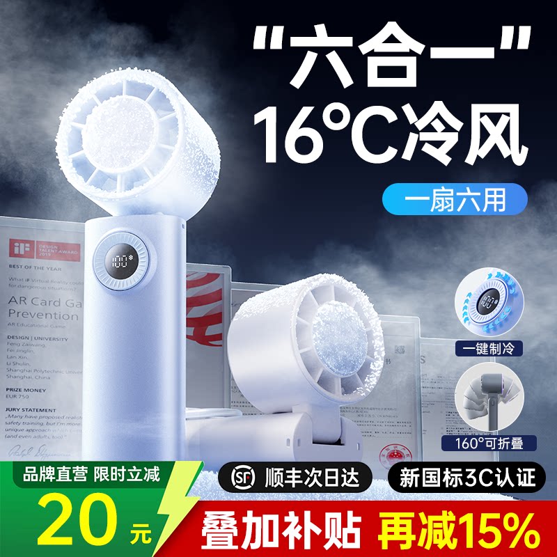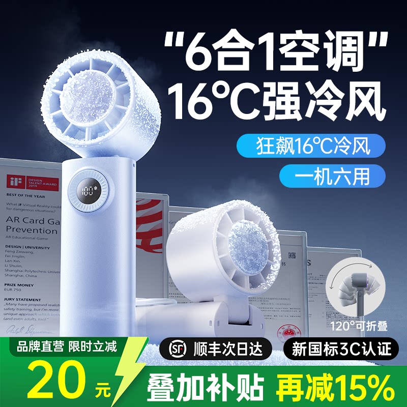 [制冷小空调]超高速手持小风扇冰敷桌面风扇便携式折叠挂脖静音办公室学生迷你户外降温神器充电2026新款风扇