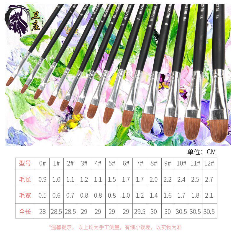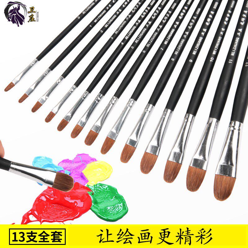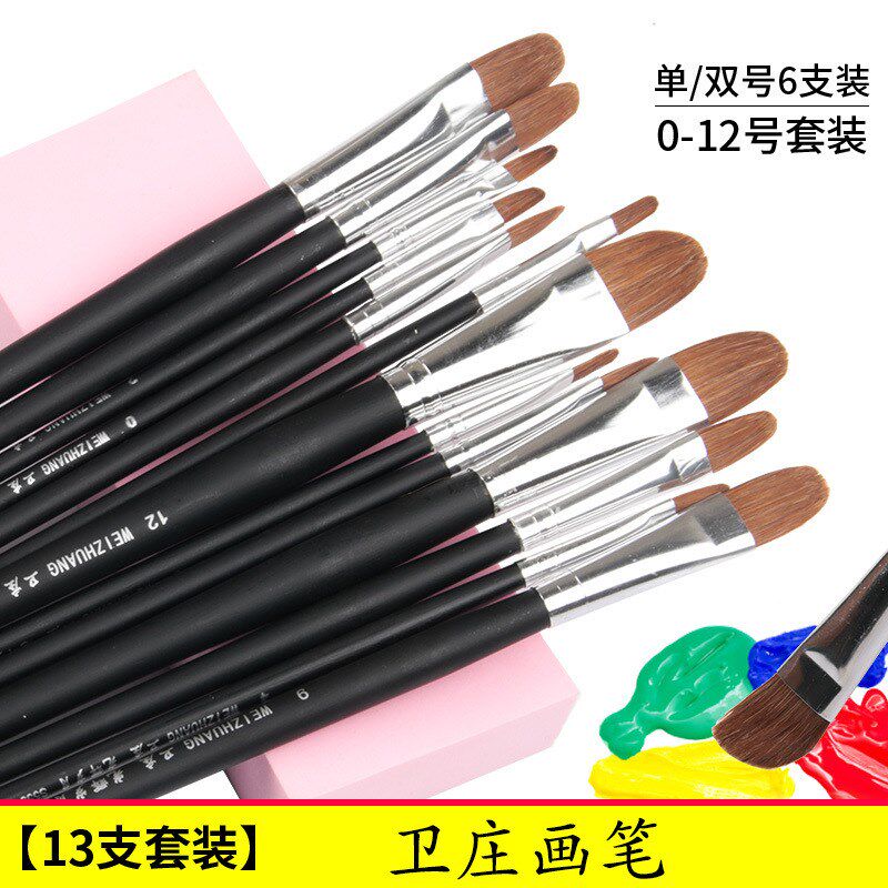 狼毫毛油画笔圆头鸭舌画笔水彩水粉丙烯画笔套装学生绘画美术用品