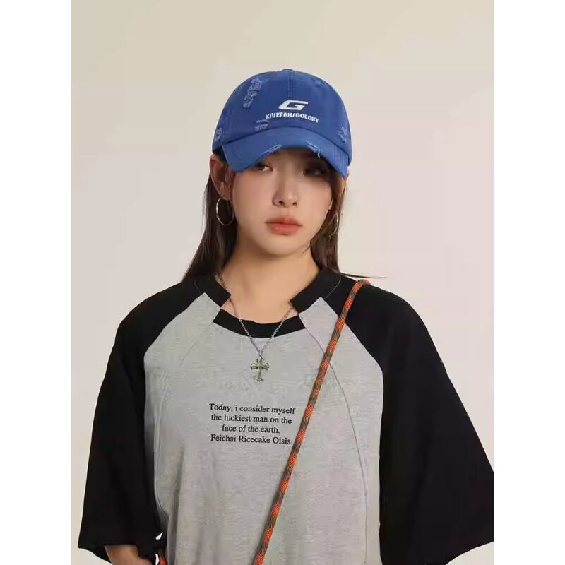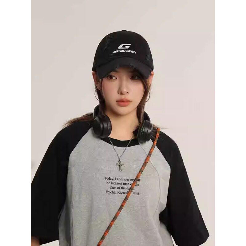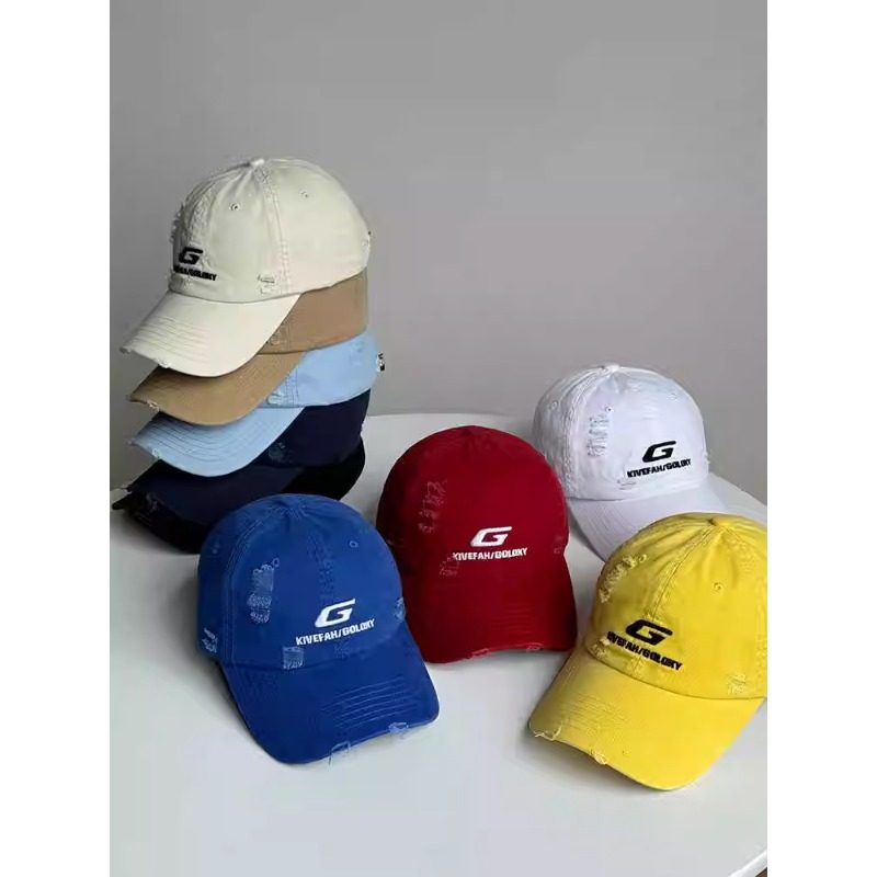 破洞棒球帽2024夏季新款男女街头G字母黄色鸭舌帽子显脸小刺绣潮