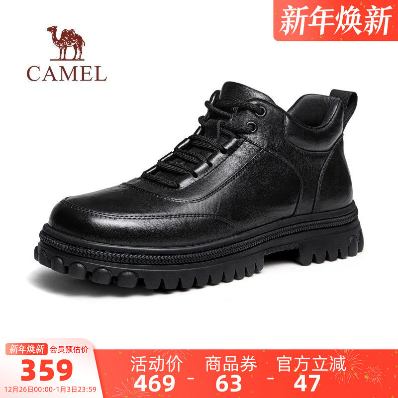 骆驼男鞋2025冬季新款加绒保暖高帮休闲皮鞋舒适柔软商务皮鞋男士