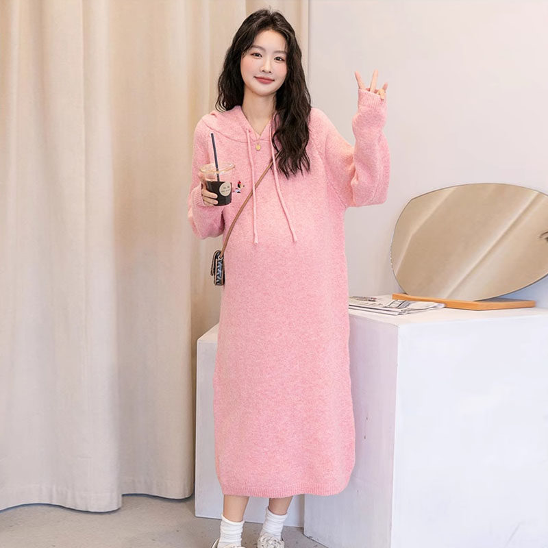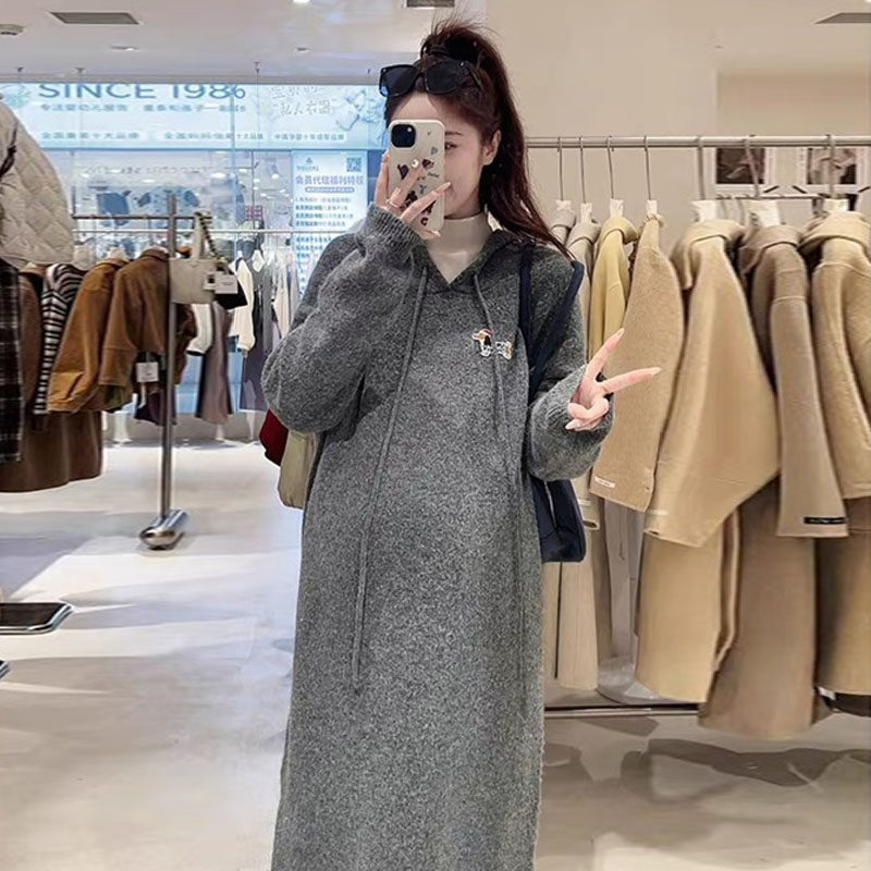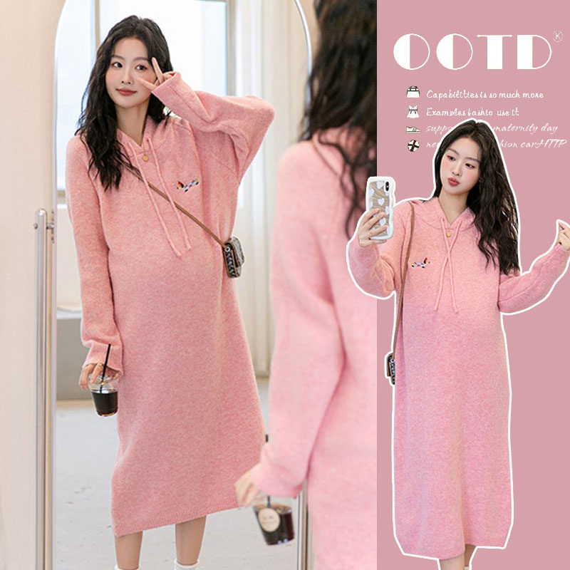 孕妇连衣裙春秋2025新款针织毛衣长裙大码宽松显瘦穿搭中长款裙子