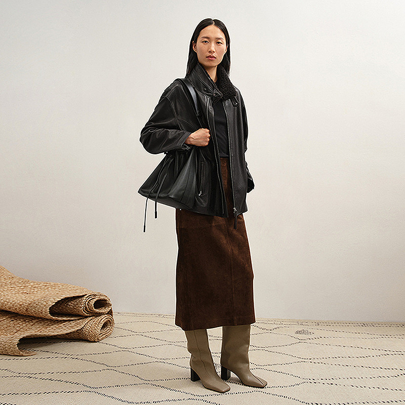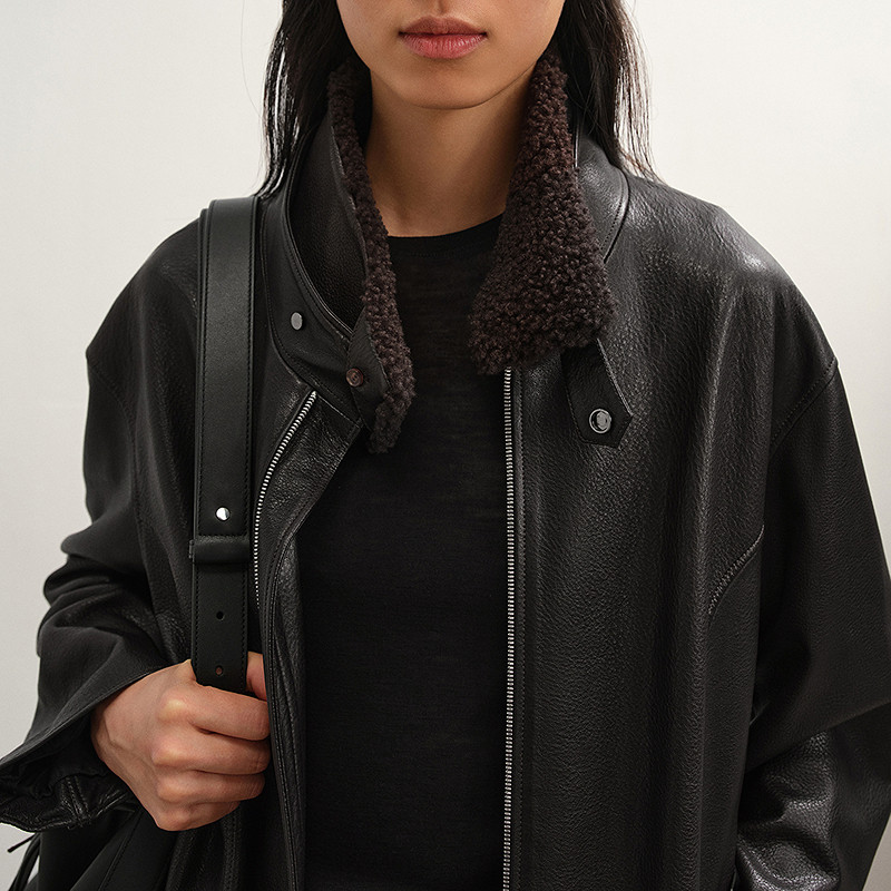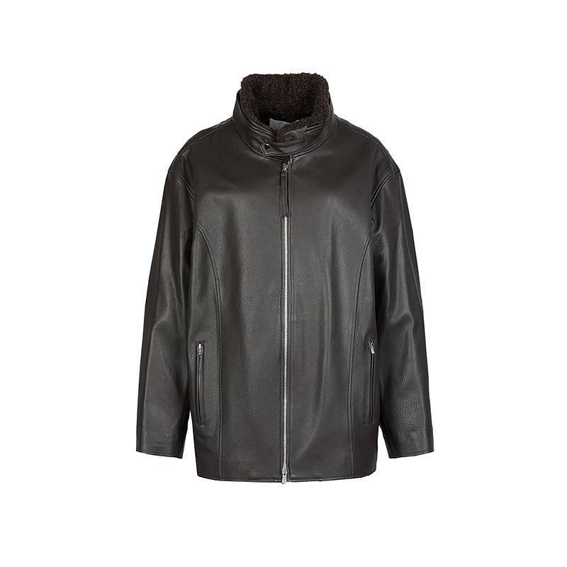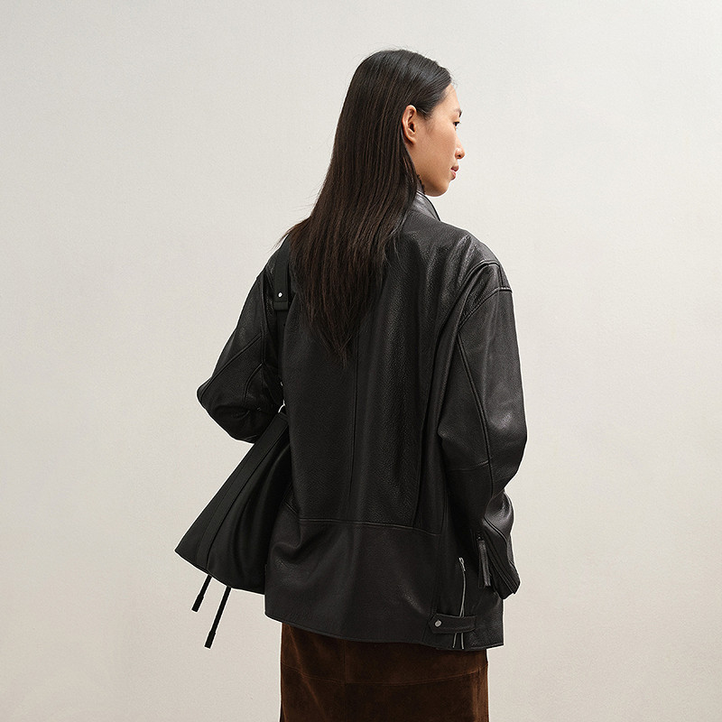 【商场同款】LESS2025年冬新款立领宽松长袖皮衣外套2P0A16110