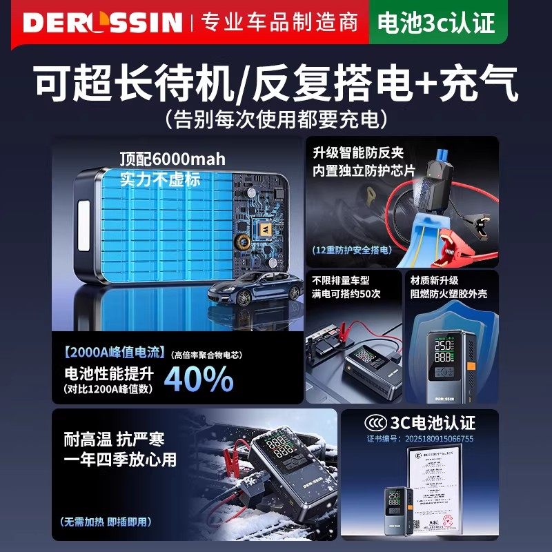 汽车充气泵启动应急电源搭电宝一体电瓶线搭火搭电神器12v24v专用