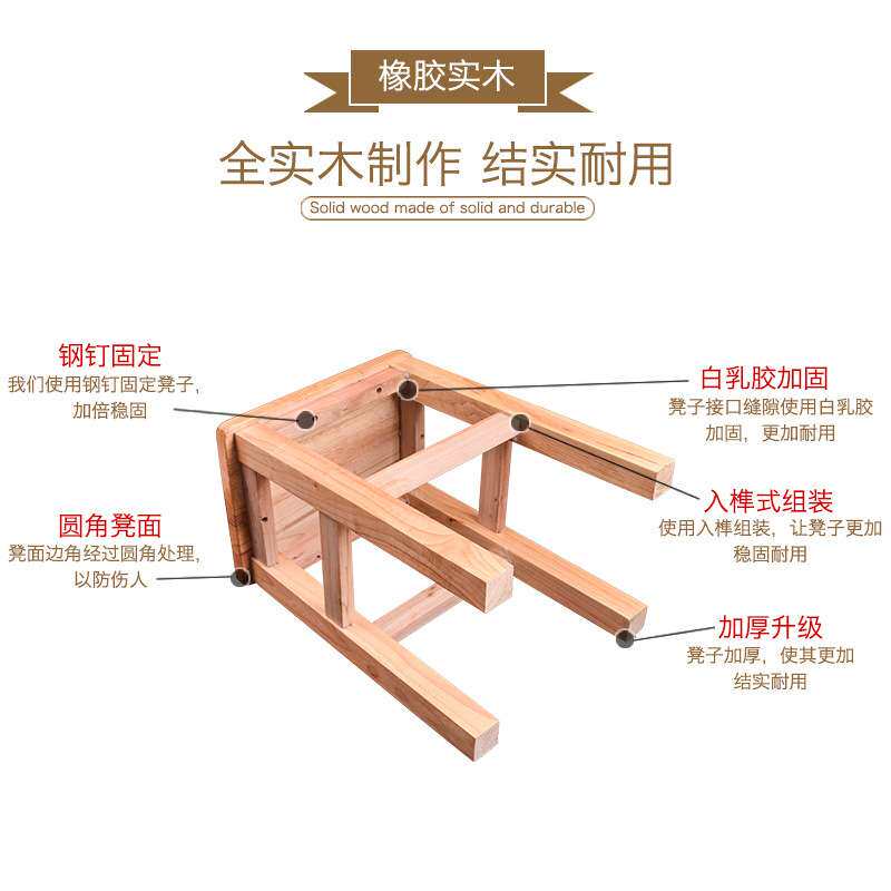 实木方凳橡胶木凳子餐饮凳椅子家用板凳 学校工程凳学生凳子加固