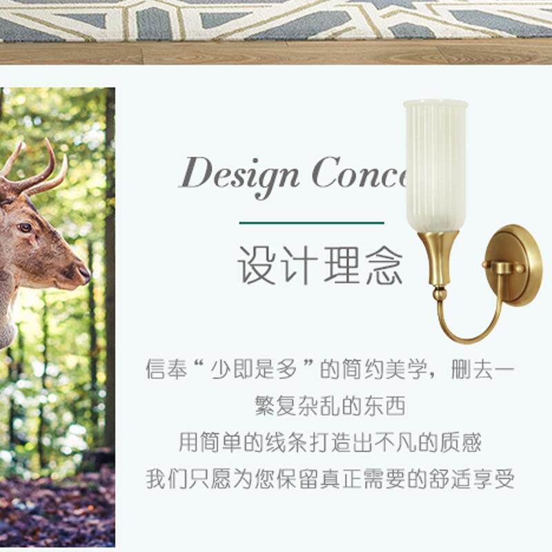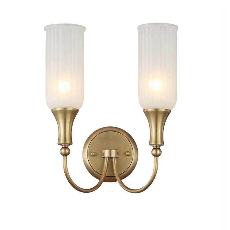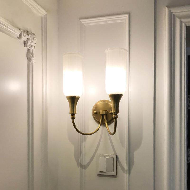 美式乡村壁灯全铜复古壁灯床头书房客厅纯铜玻璃壁灯美式LED壁灯